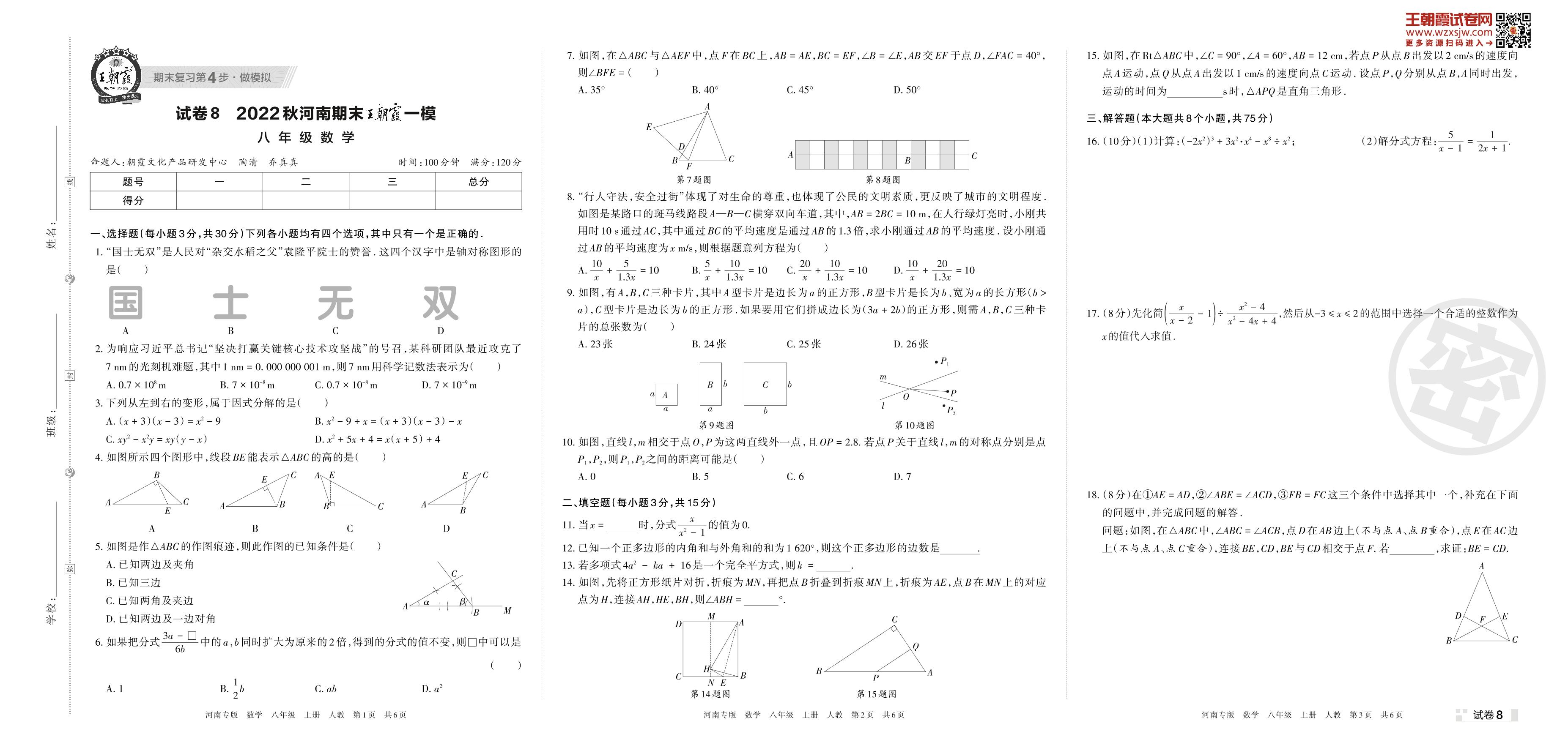 王朝霞期末模拟卷八年级上册数学(人教版)_R221115151202516【8】