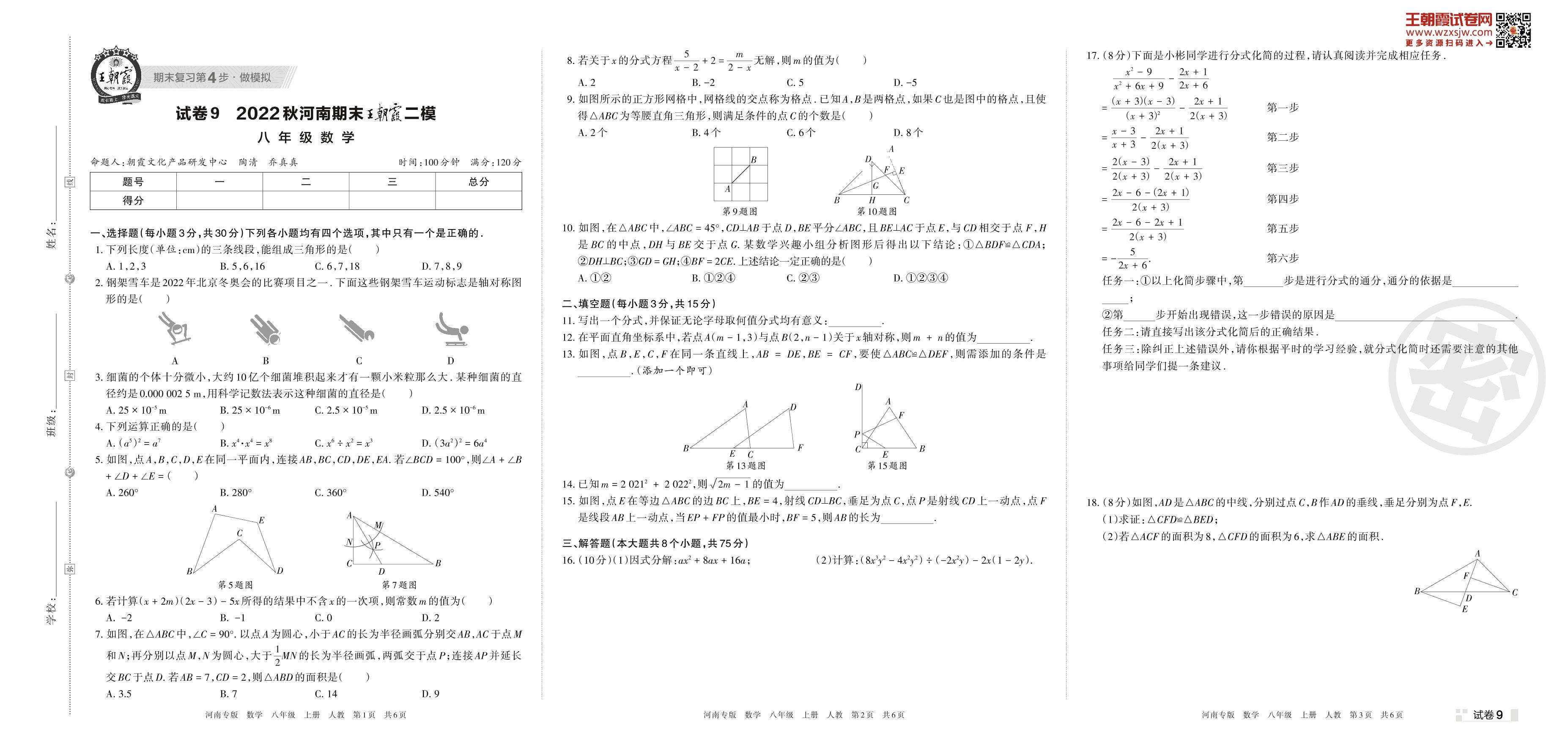 王朝霞期末模拟卷八年级上册数学(人教版)_R221115151202093【9】