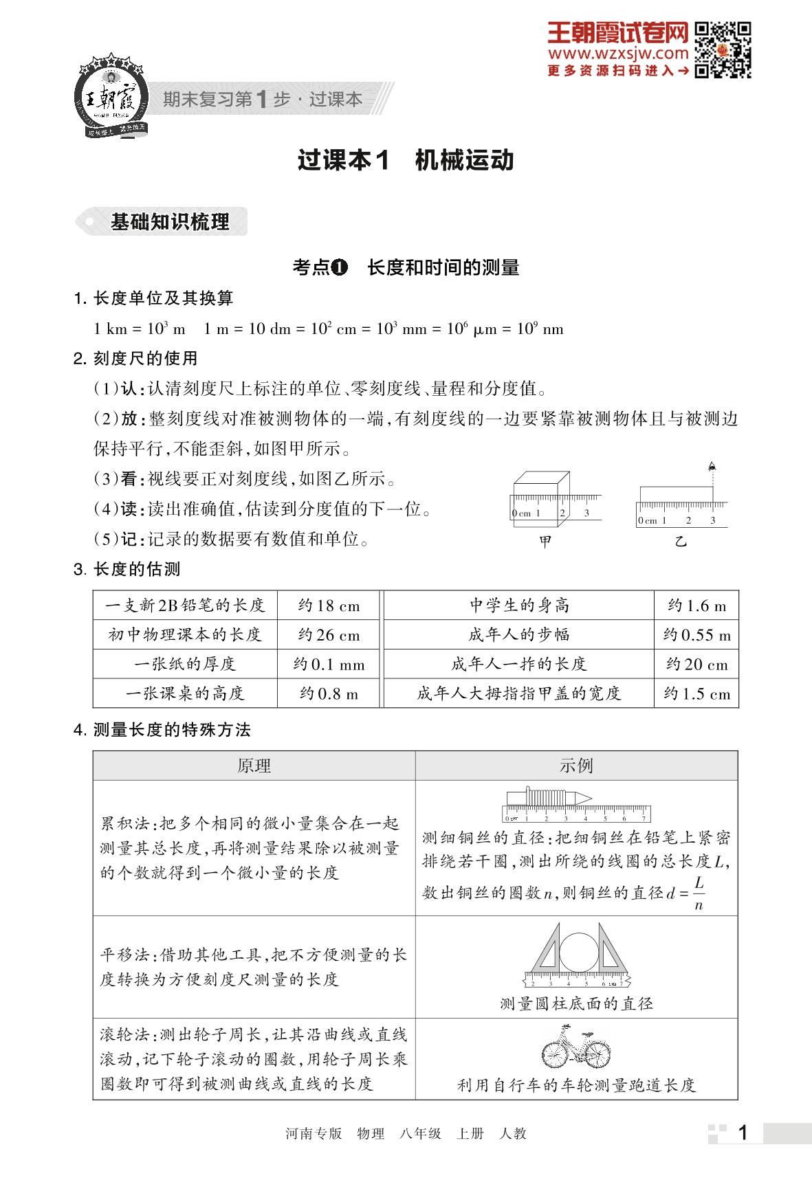 王朝霞期末过课本——1 机械运动八年级上册物理(人教版)