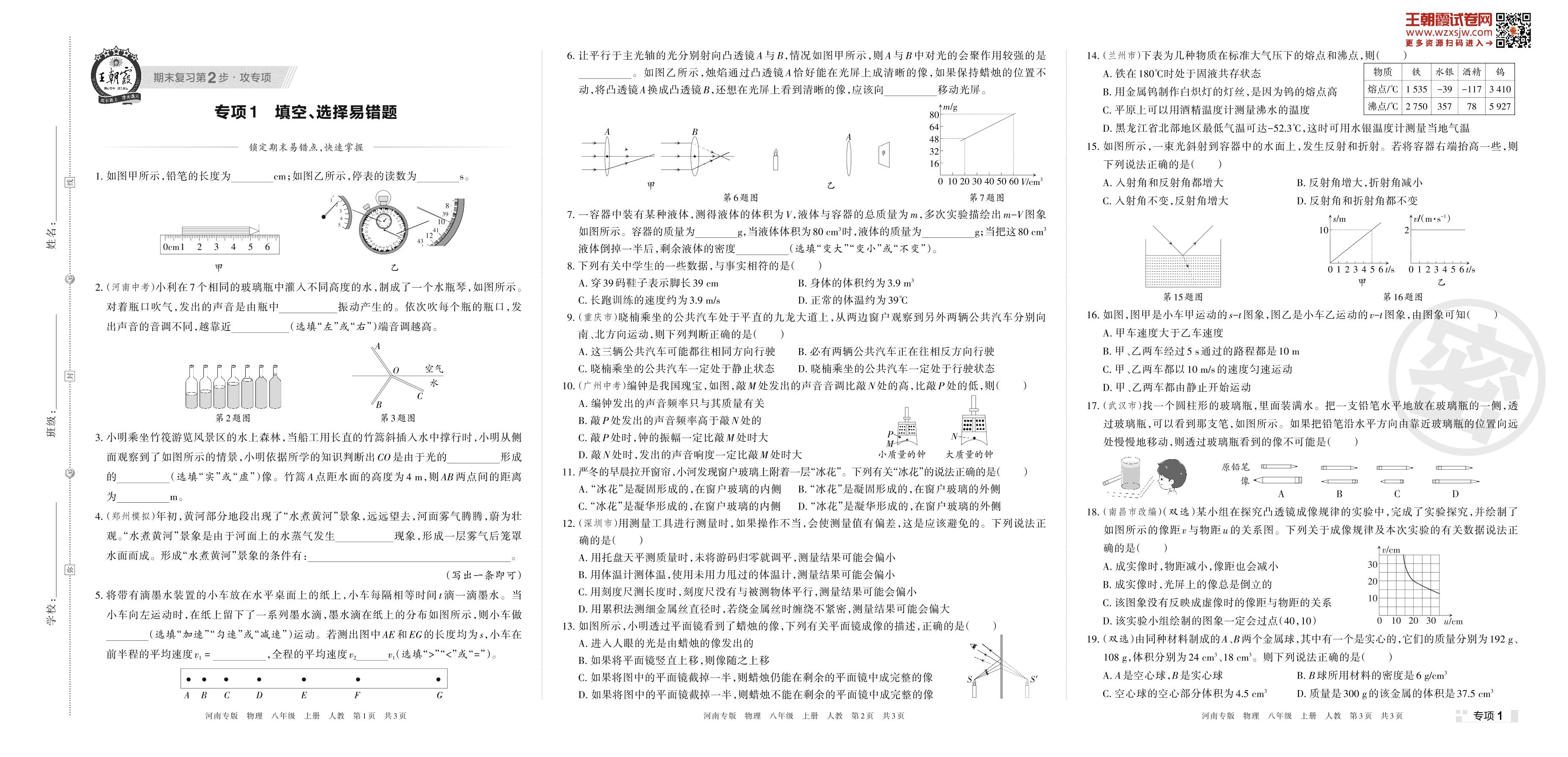 王朝霞期末专项卷——填空、选择易错题八年级上册物理(人教版)【1】
