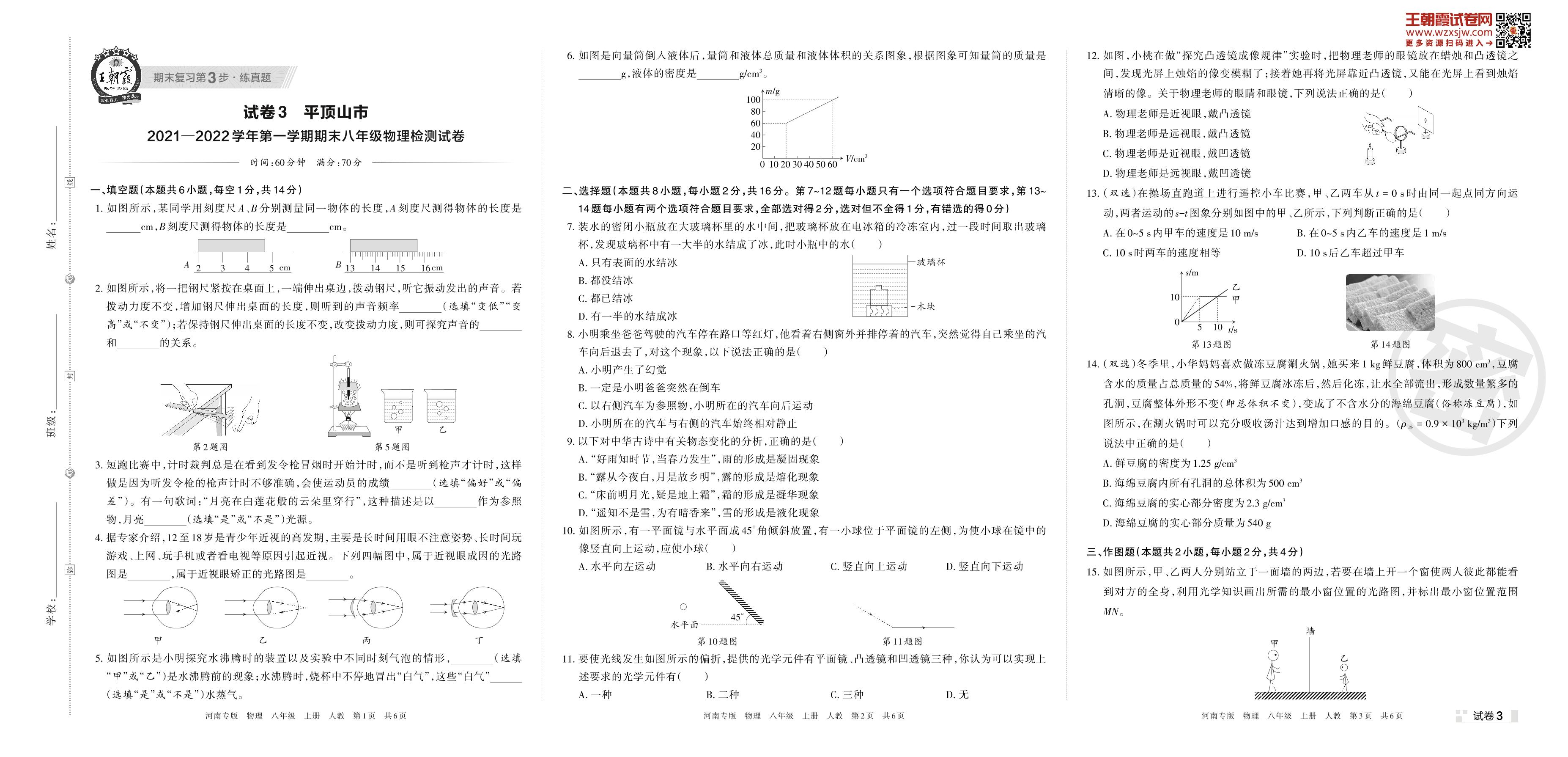 平顶山市2021—2022学年第一学期期末八年级物理检测试卷(人教版)【3】