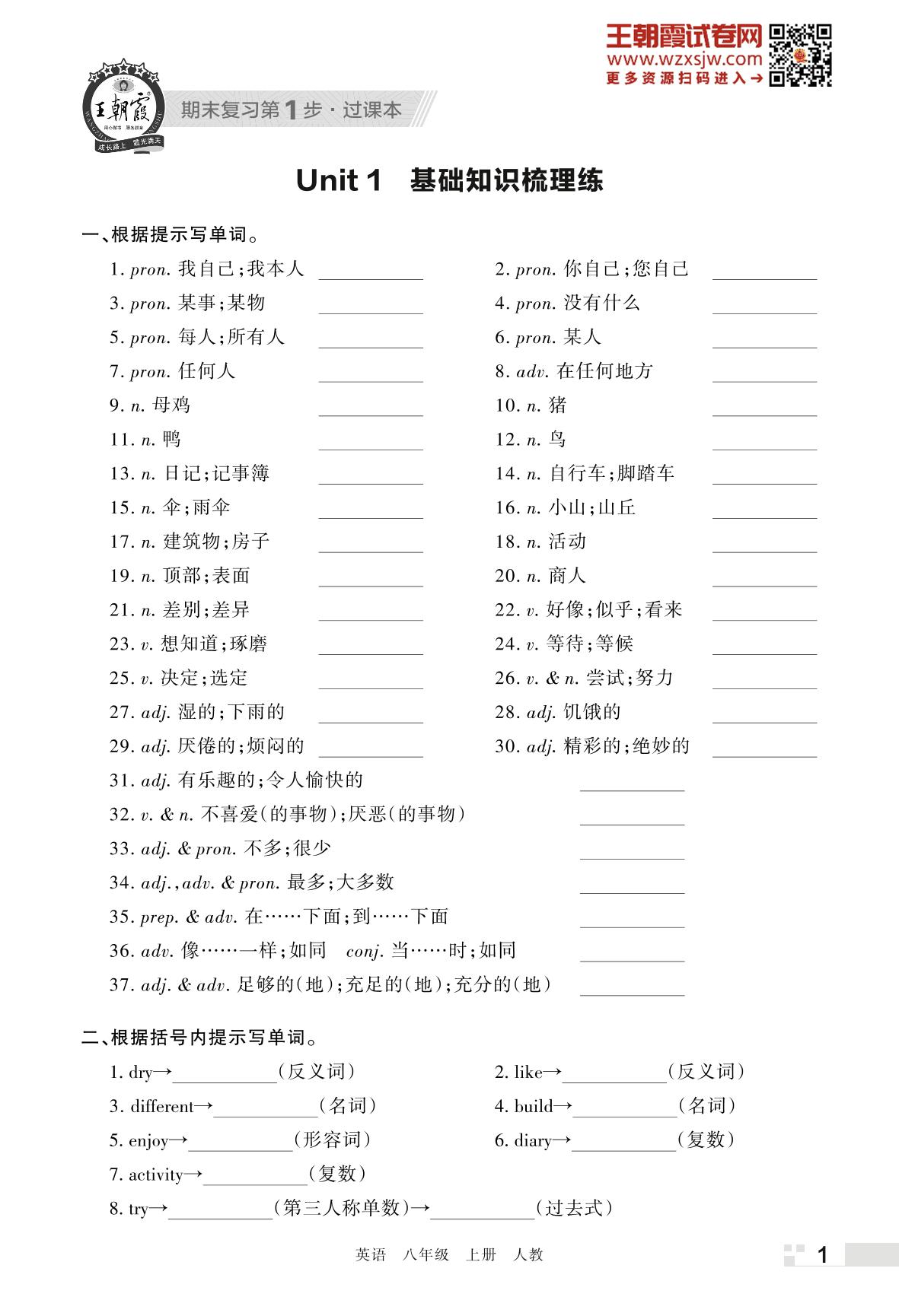 王朝霞期末过课本——Unit 1 基础知识梳理练八年级上册英语(人教版)