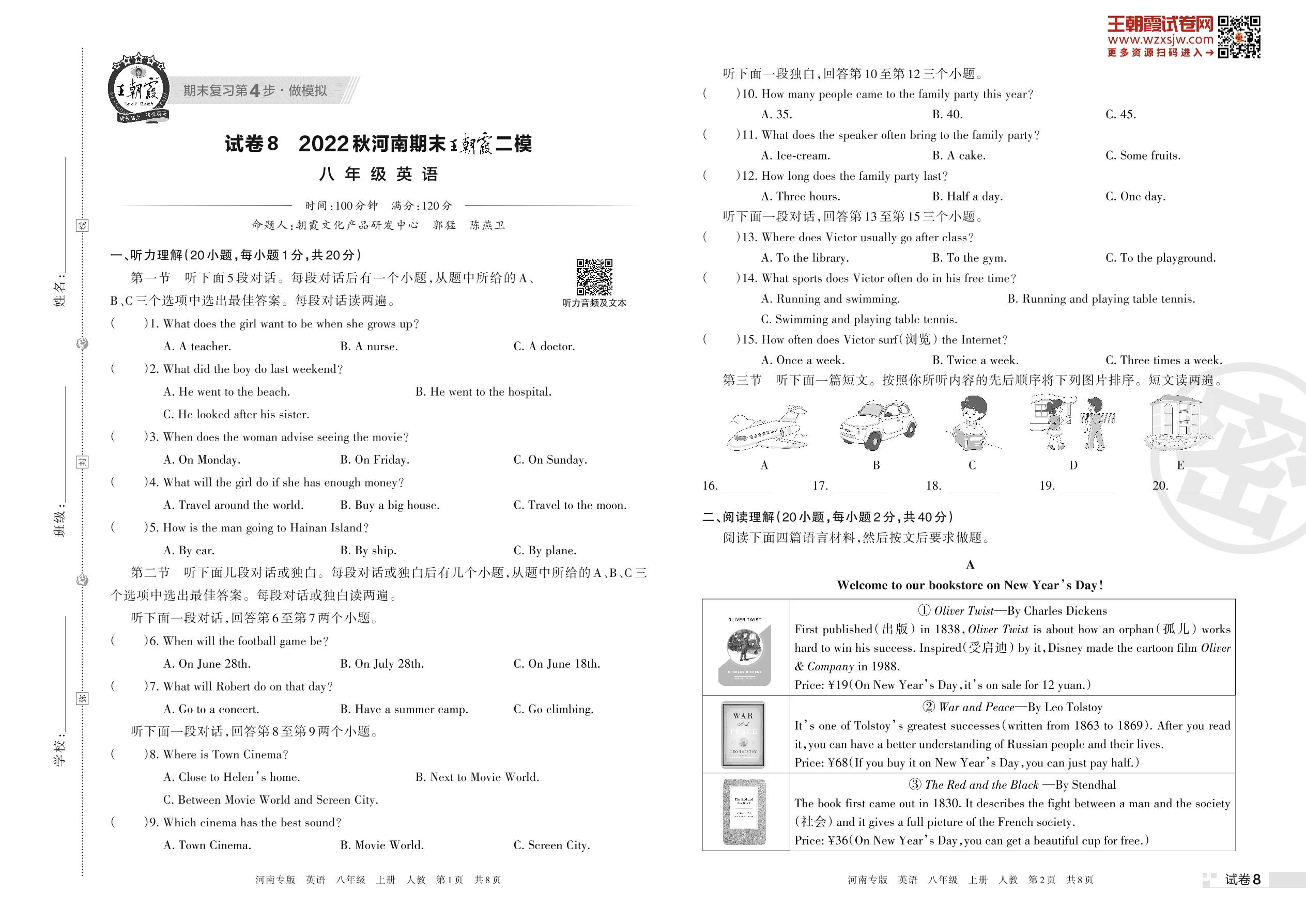 王朝霞期末模拟卷八年级上册英语(人教版)_R221115161021940【8】