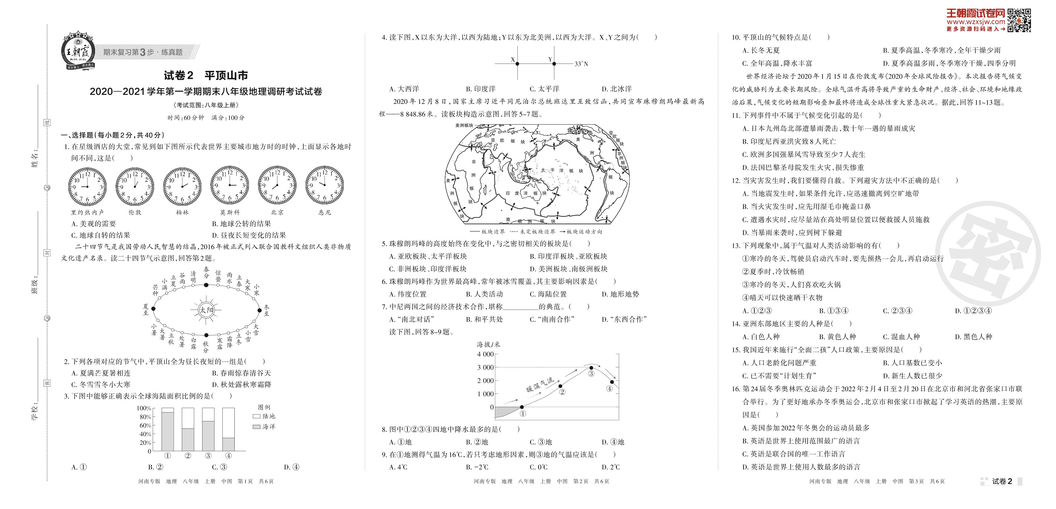 平顶山市2020—2021学年第一学期期末八年级地理调研考试试卷(中图版)【2】