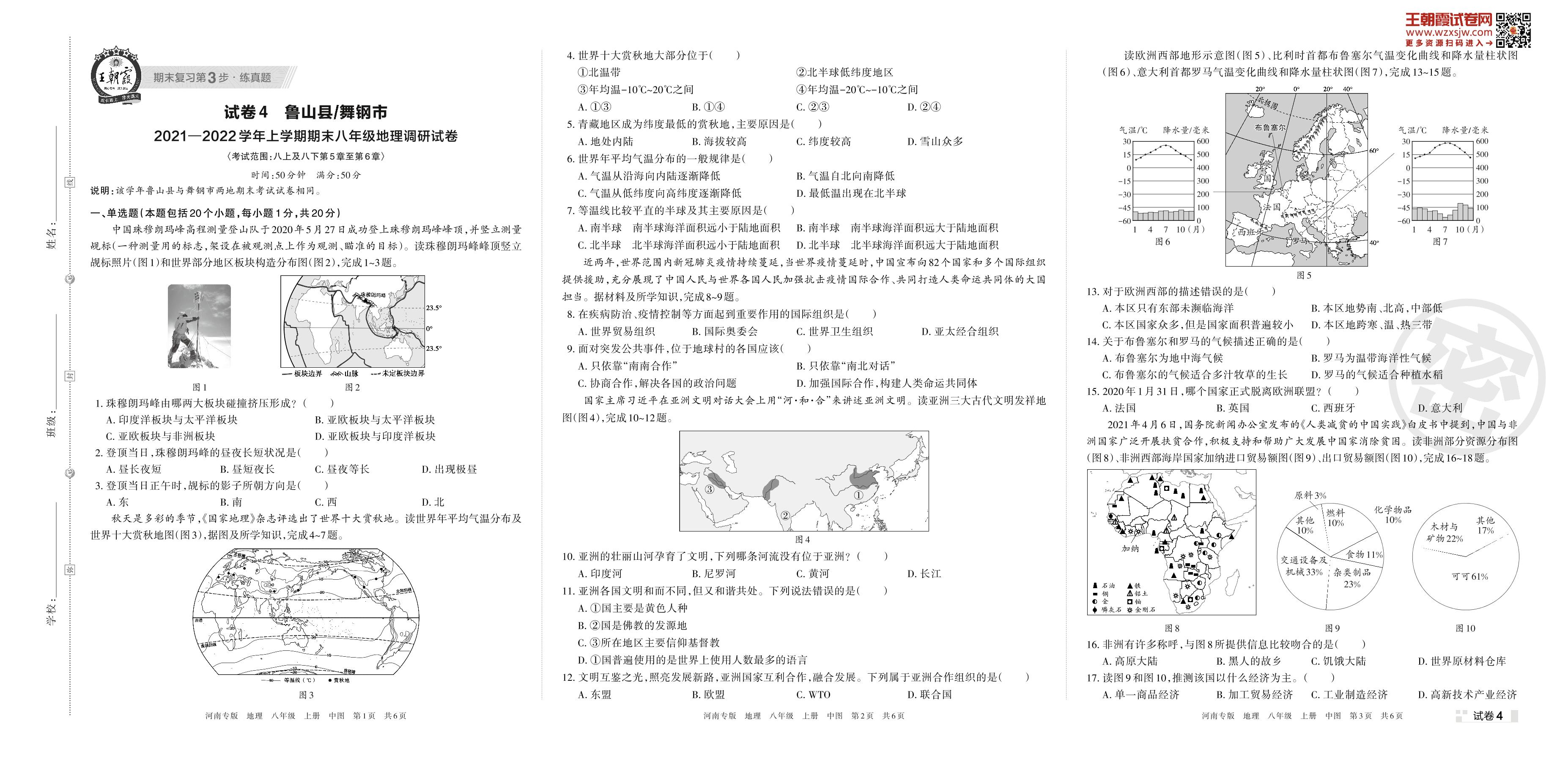 鲁山县、舞钢市2021—2022学年上学期期末八年级地理调研试卷(中图版)【4】