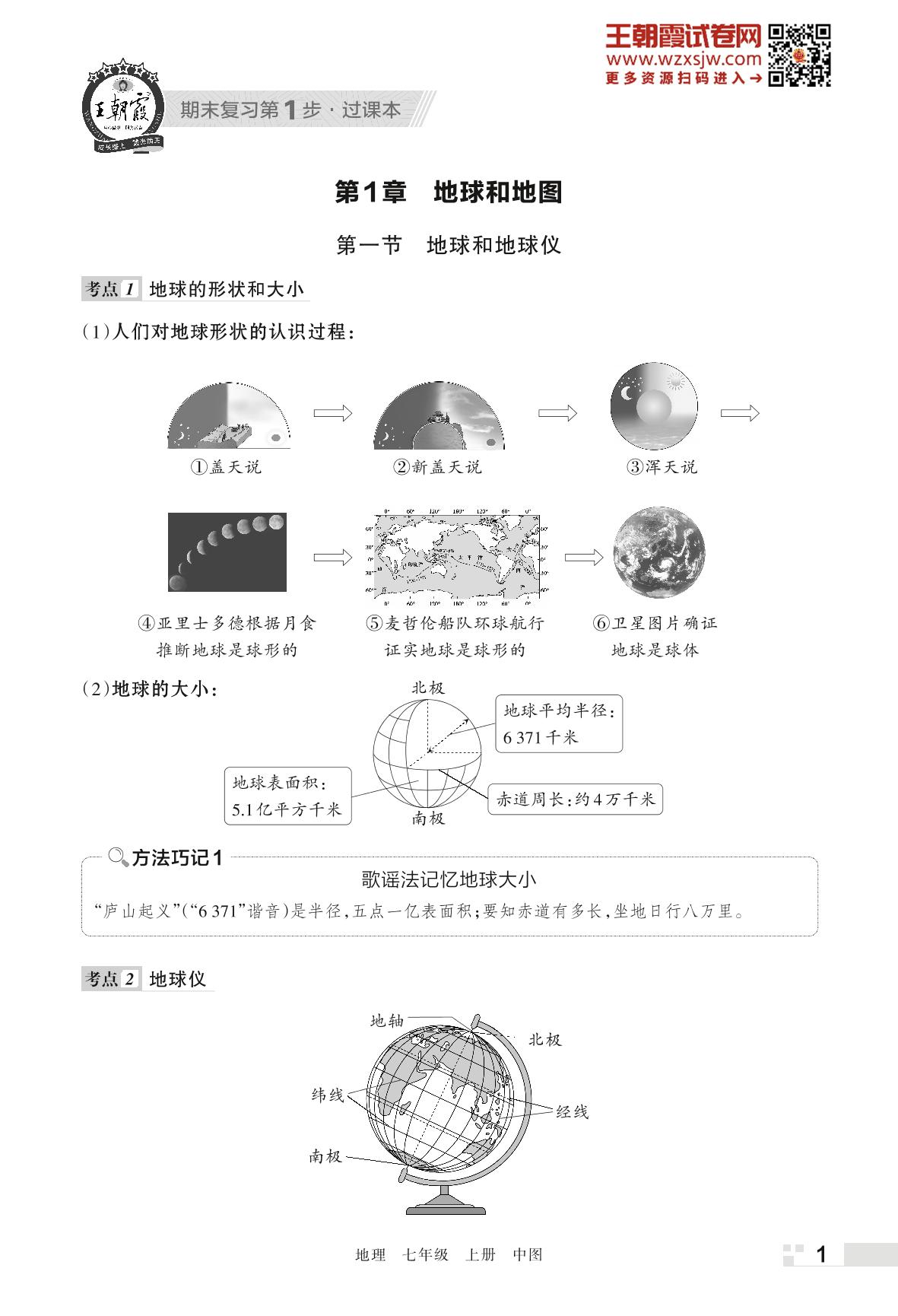 王朝霞期末过课本——第1章 地球和地图七年级上册地理(中图版)