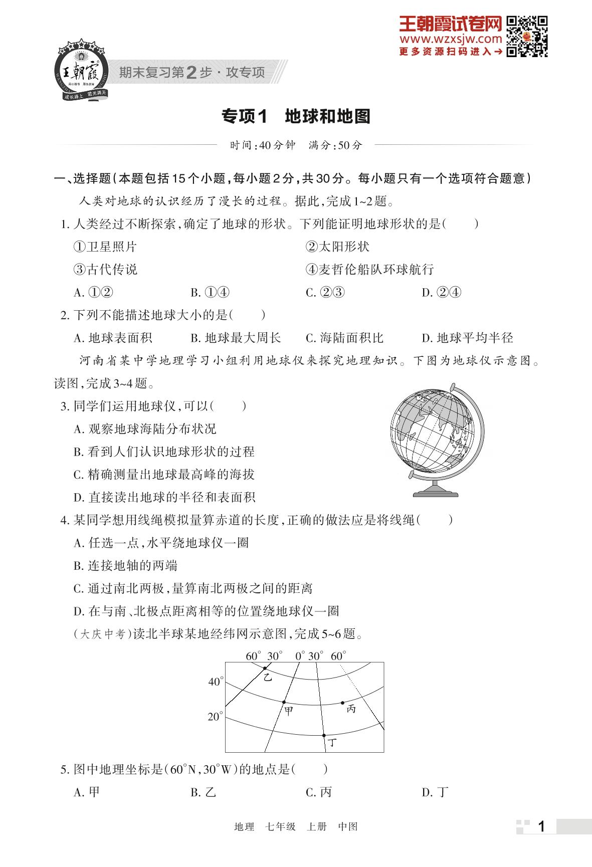王朝霞期末专项卷——地球和地图七年级上册地理(中图版)_R221115173704905【1】