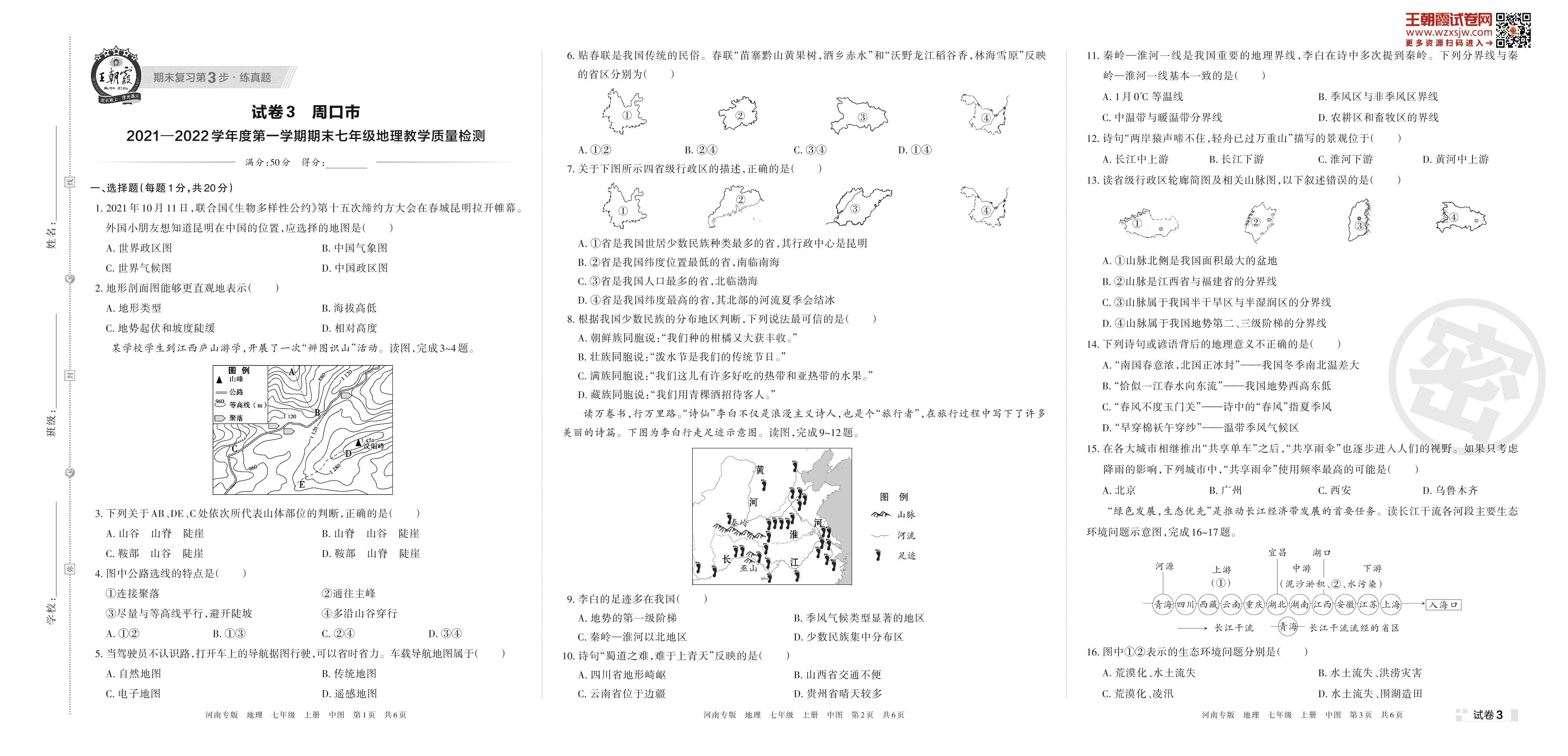 周口市2021—2022学年度第一学期期末七年级地理教学质量检测(中图版)【3】