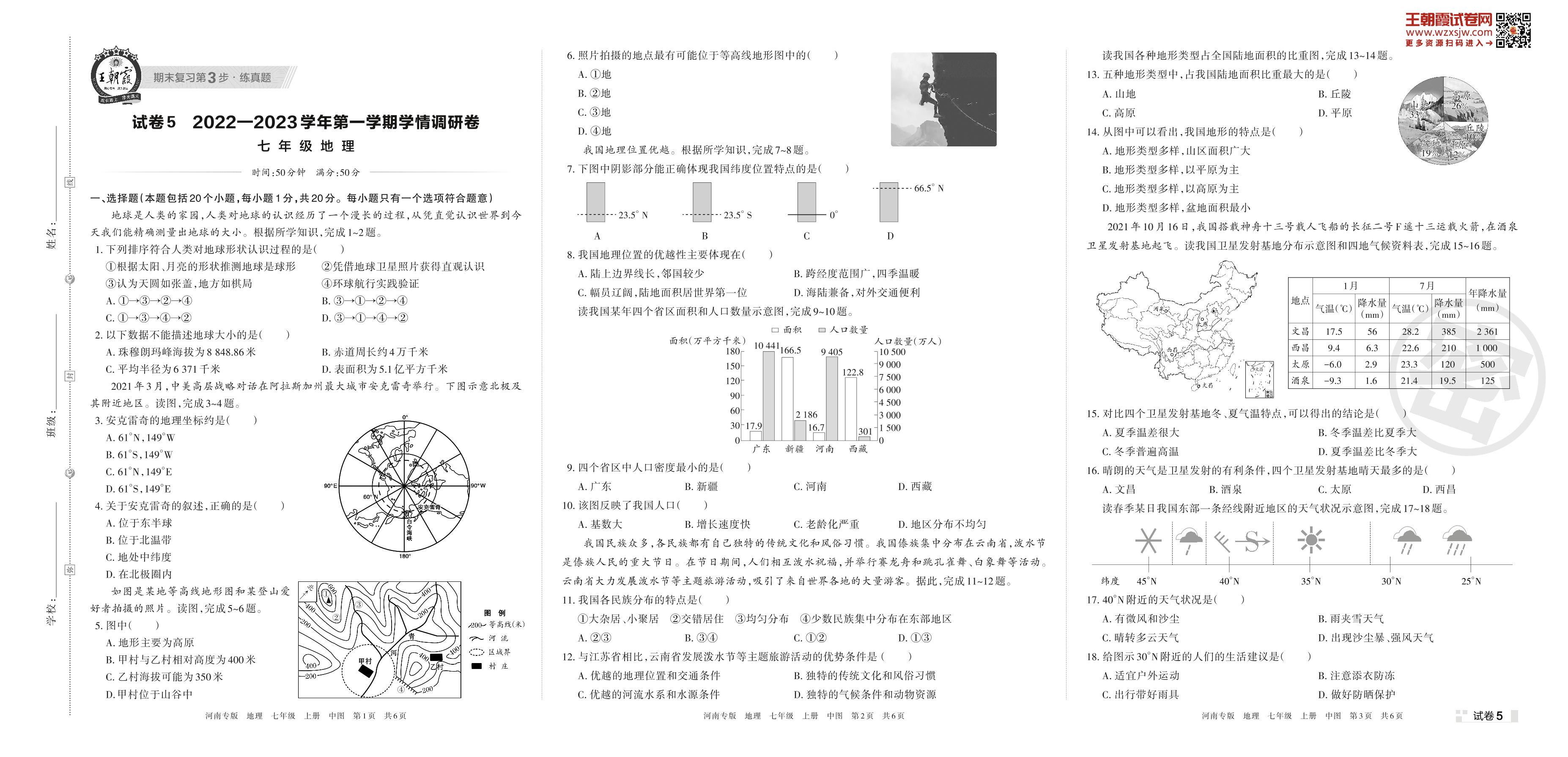2022—2023学年第一学期学情调研卷七年级上册地理(中图版)【5】