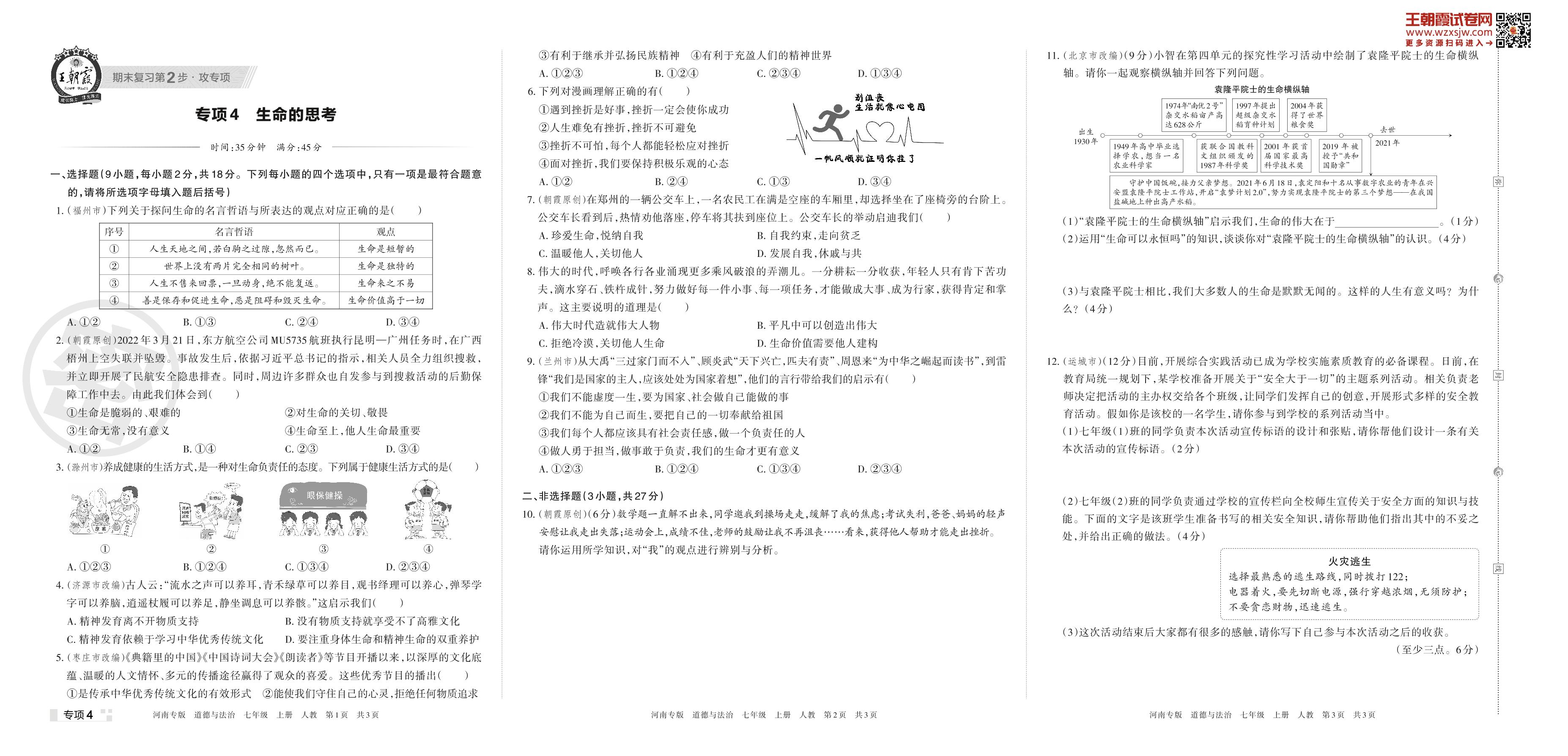 王朝霞期末专项卷——生命的思考七年级上册道德与法治(人教版)_R221116144220607【4】