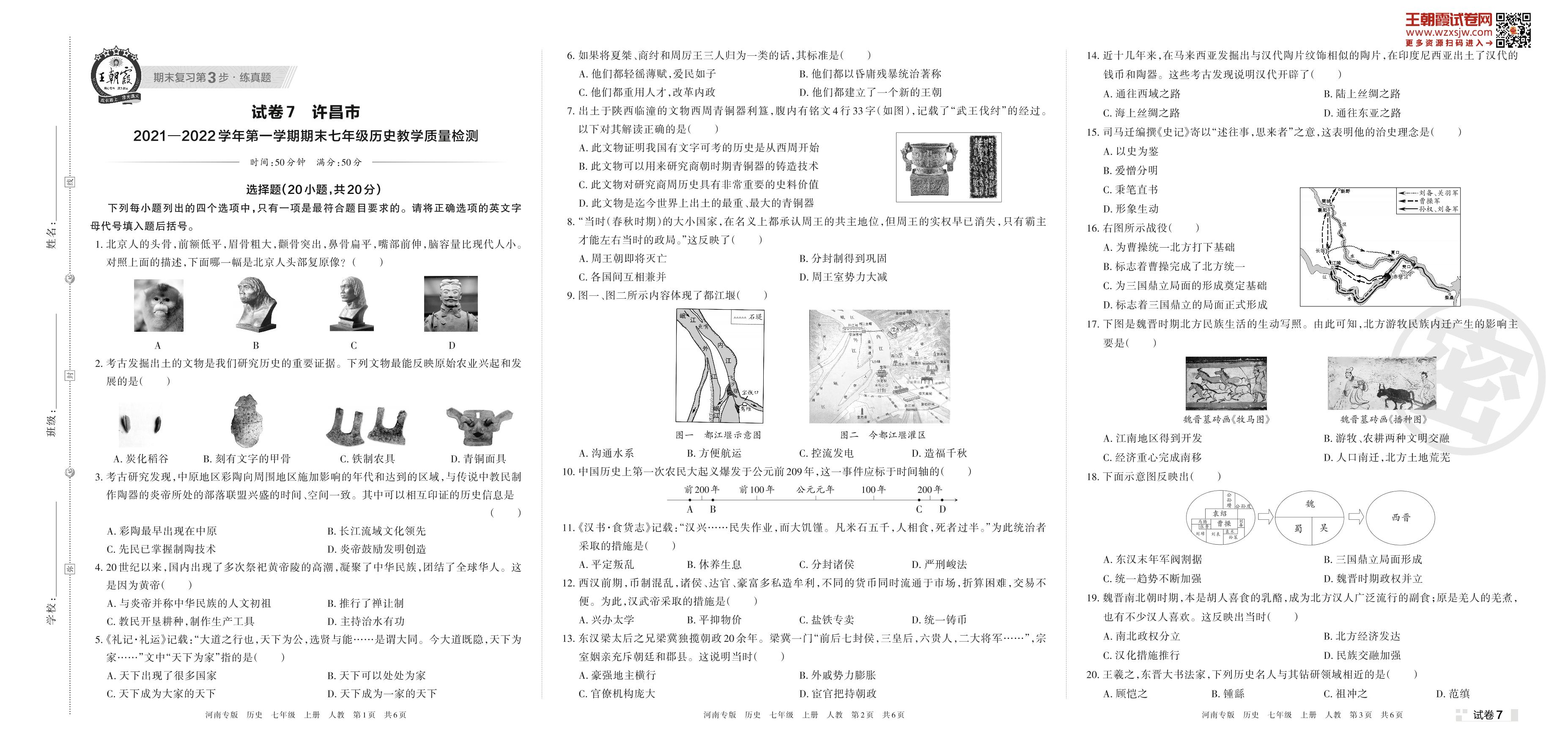 许昌市2021—2022学年第一学期期末七年级历史教学质量检测 (人教版)【7】