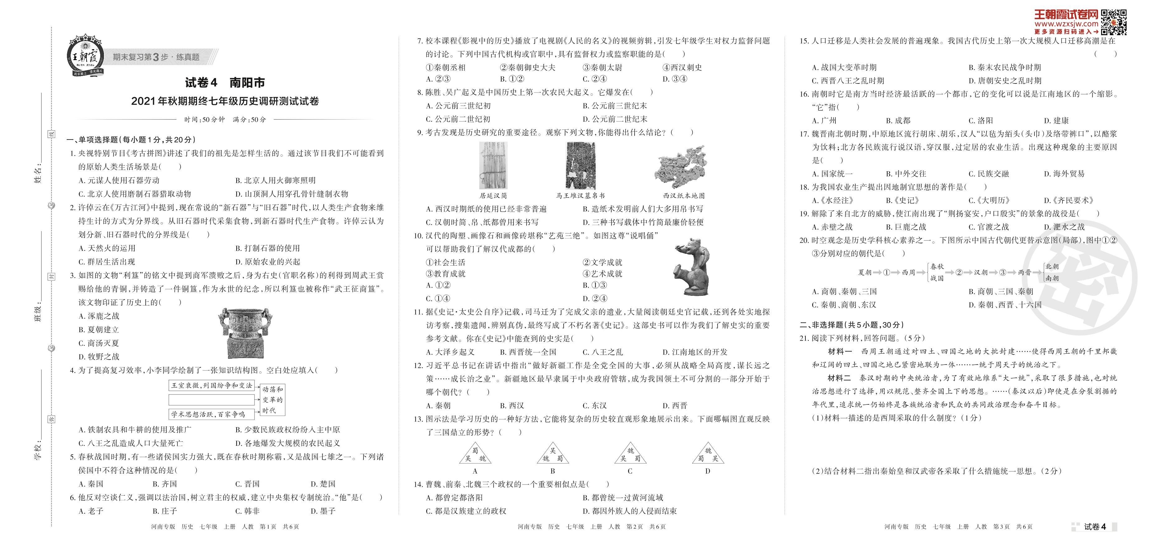 南阳市2021年秋期期终七年级历史调研测试试卷(人教版)【4】