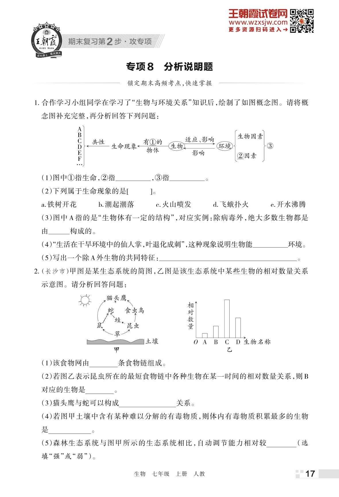 王朝霞期末专项卷——分析说明题七年级上册生物(人教版)【8】