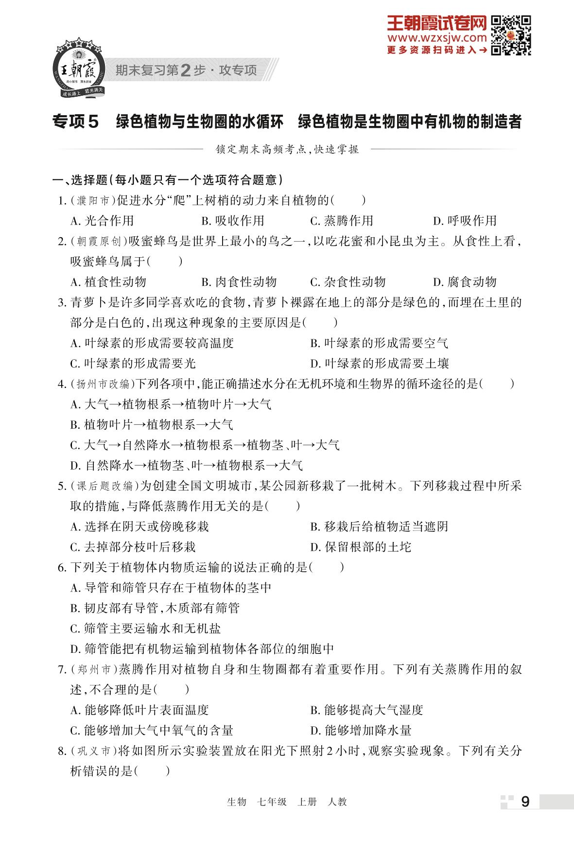 王朝霞期末专项卷——绿色植物与生物圈的水循环 绿色植物是生物圈中有机物的制造者七年级上册生物(人教版)【5】