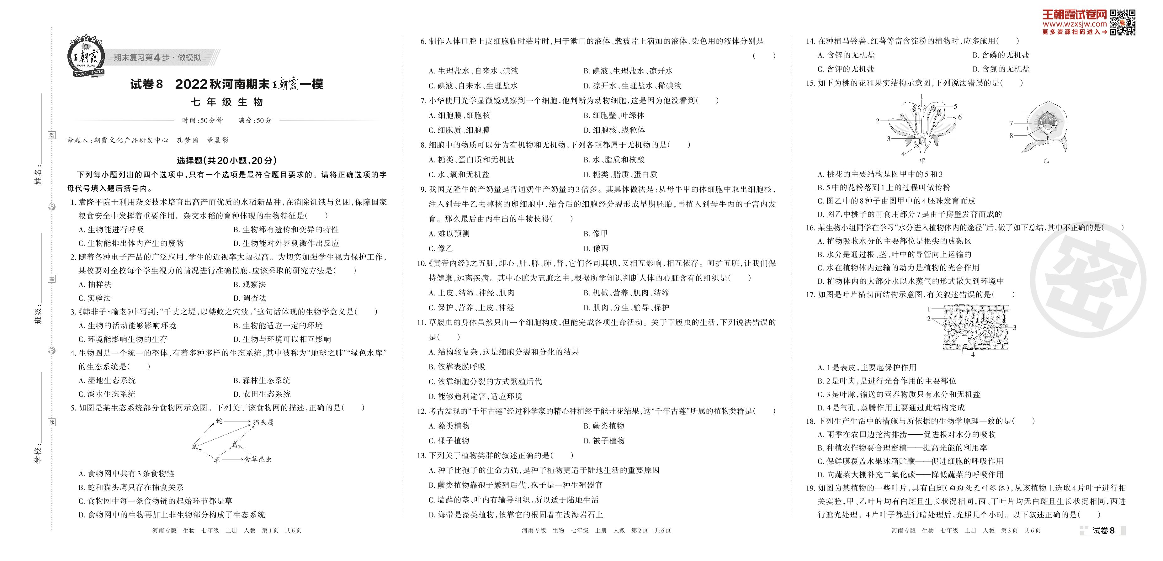 王朝霞期末模拟卷七年级上册生物(人教版)_R221116151027947【8】