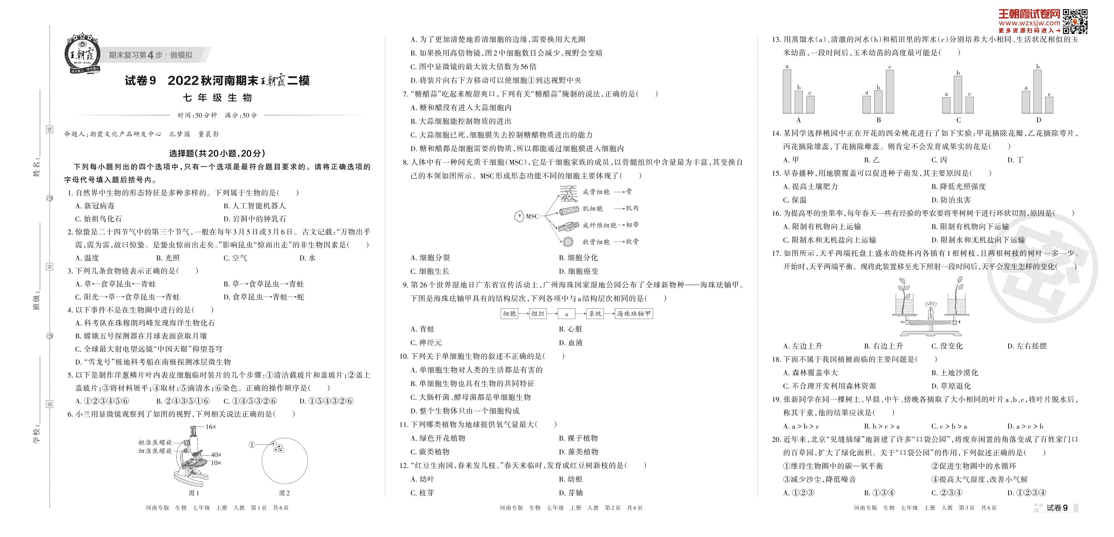 王朝霞期末模拟卷七年级上册生物(人教版)_R221116151027676【9】