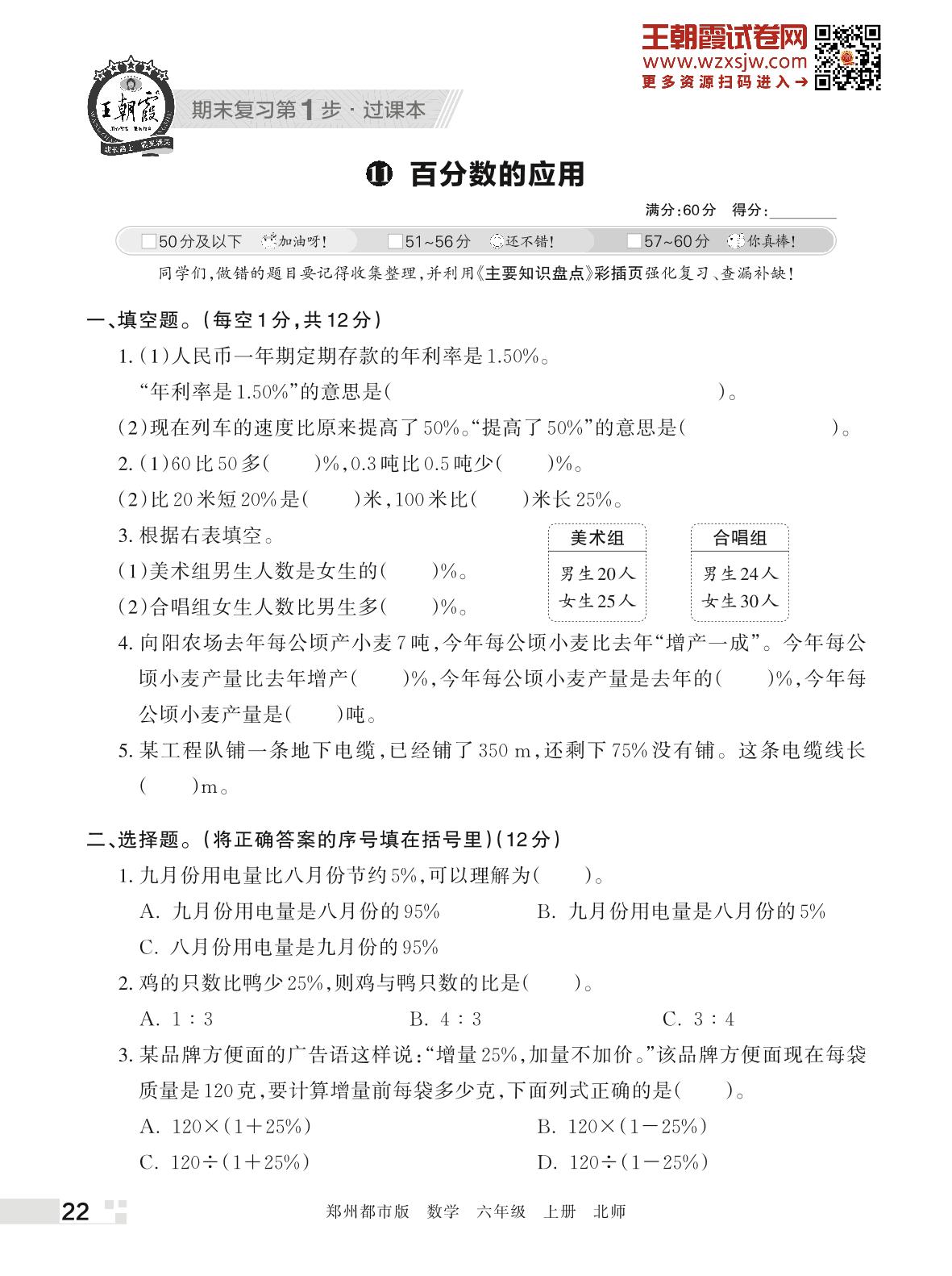 王朝霞期末过课本——11 百分数的应用六年级上册数学(北师版)_R221116152550156