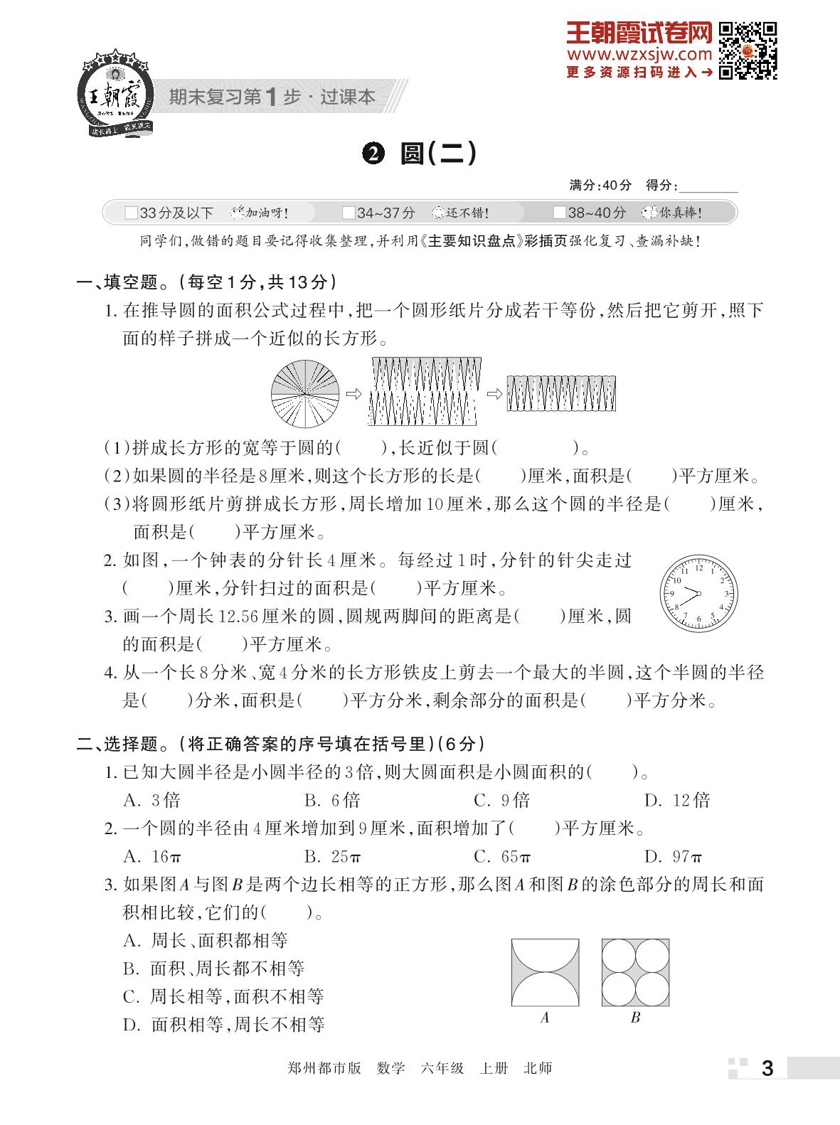 王朝霞期末过课本——2 圆(二)六年级上册数学(北师版)_R221116152551322