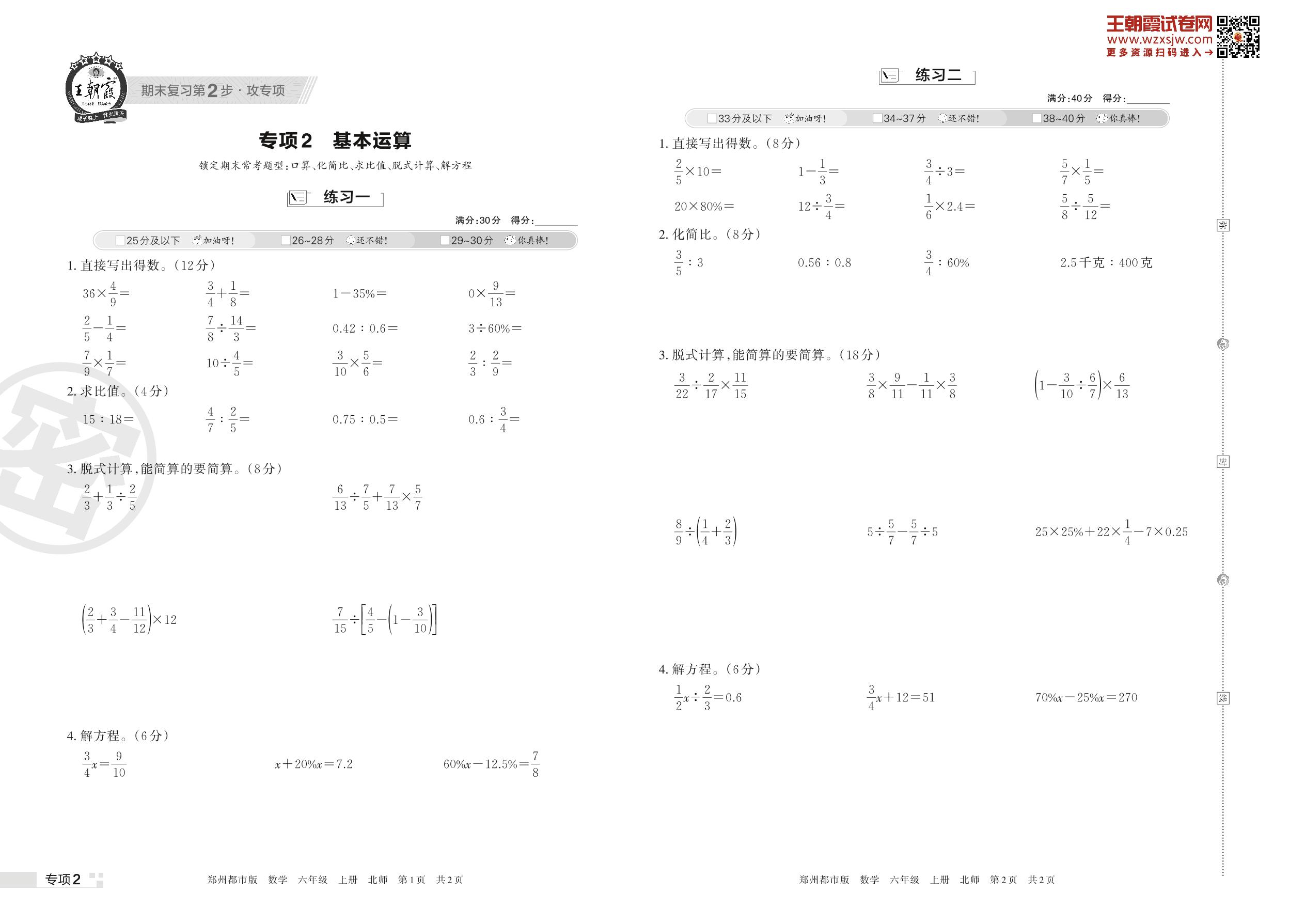 王朝霞期末专项卷——基本运算六年级上册数学(北师版)_R221116152551250【2】