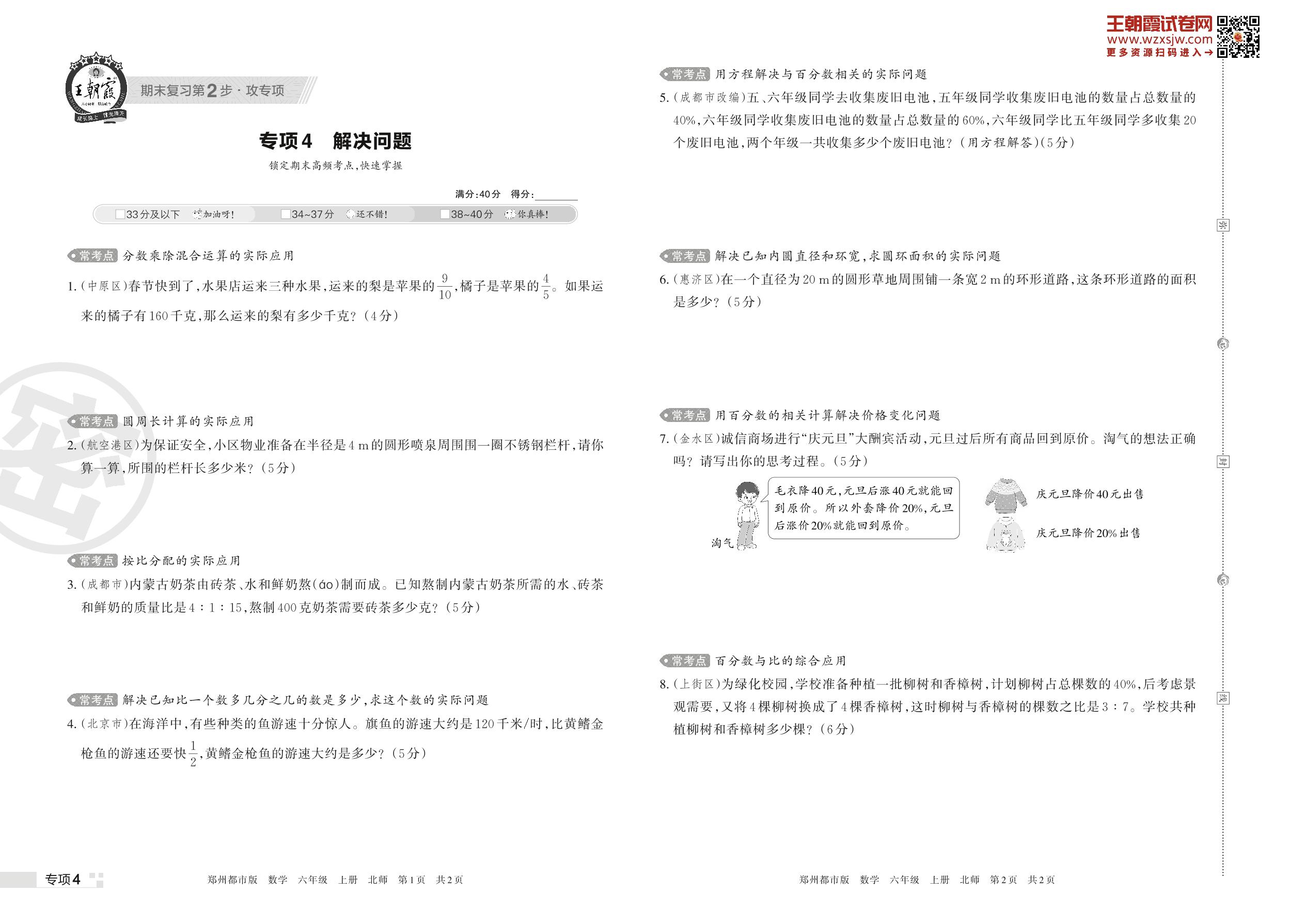 王朝霞期末专项卷——解决问题六年级上册数学(北师版)_R221116152552846【4】