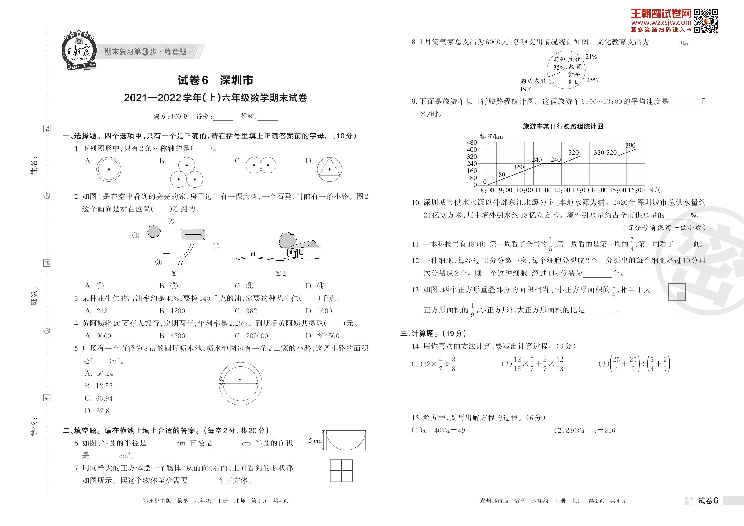 深圳市2021—2022学年(上)六年级数学期末试卷(北师版)【6】
