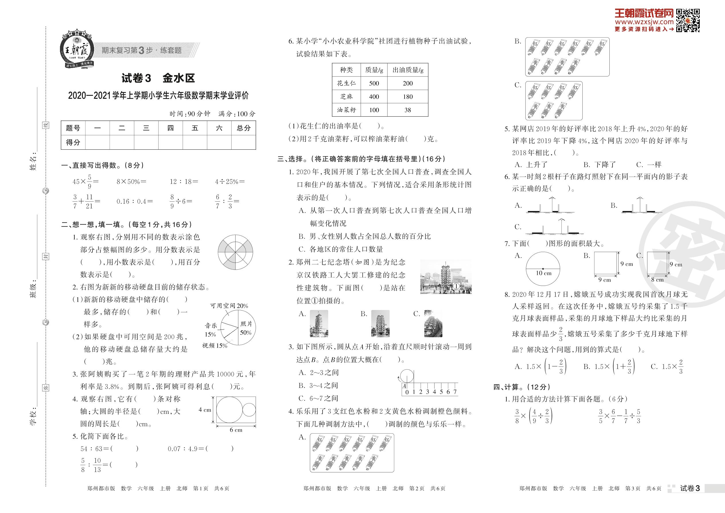 金水区2020—2021学年度上学期六年级数学期末小学生学业评价(北师版)【3】