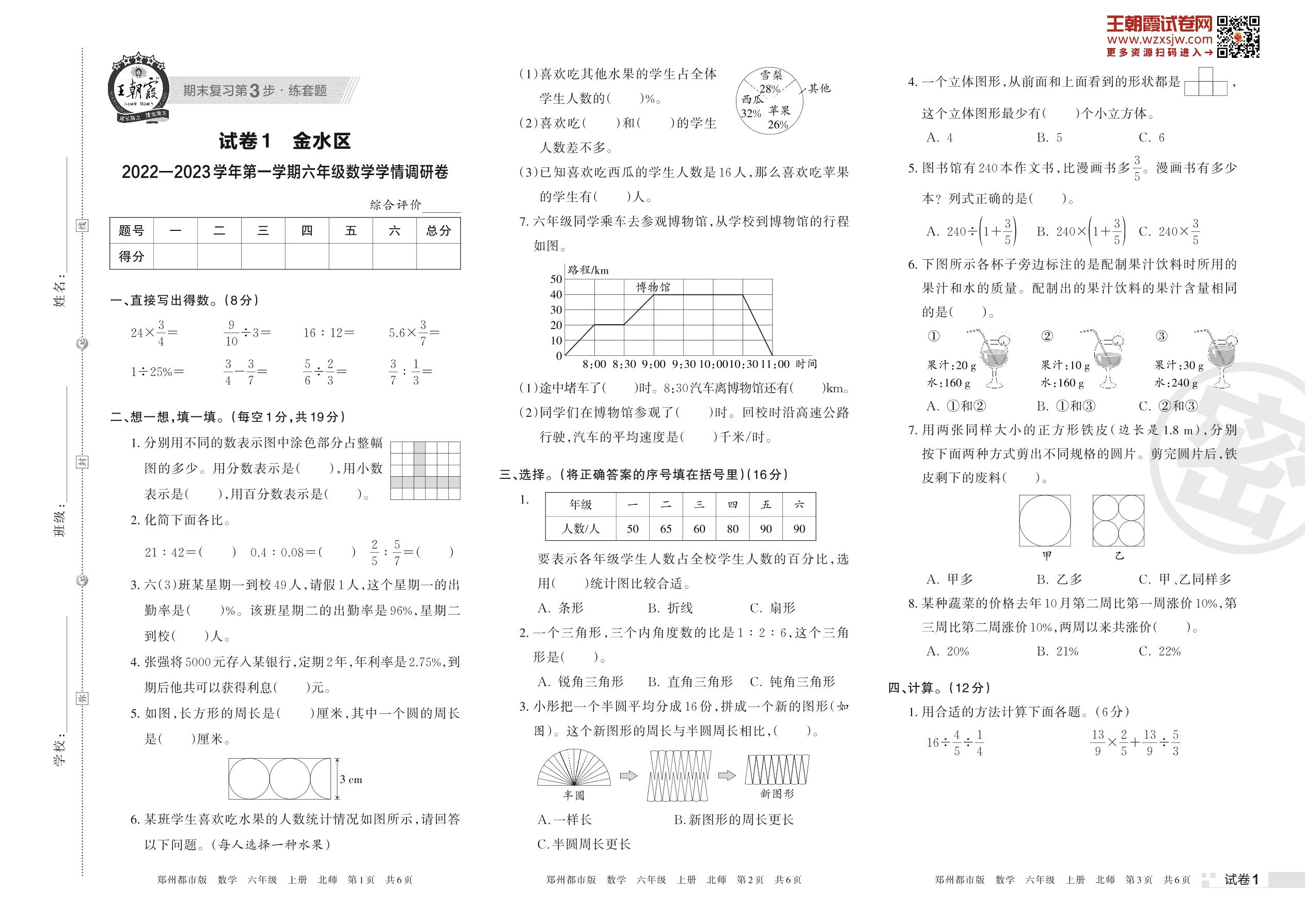 金水区2022—2023学年第一学期六年级数学学情调研卷(北师版)【1】