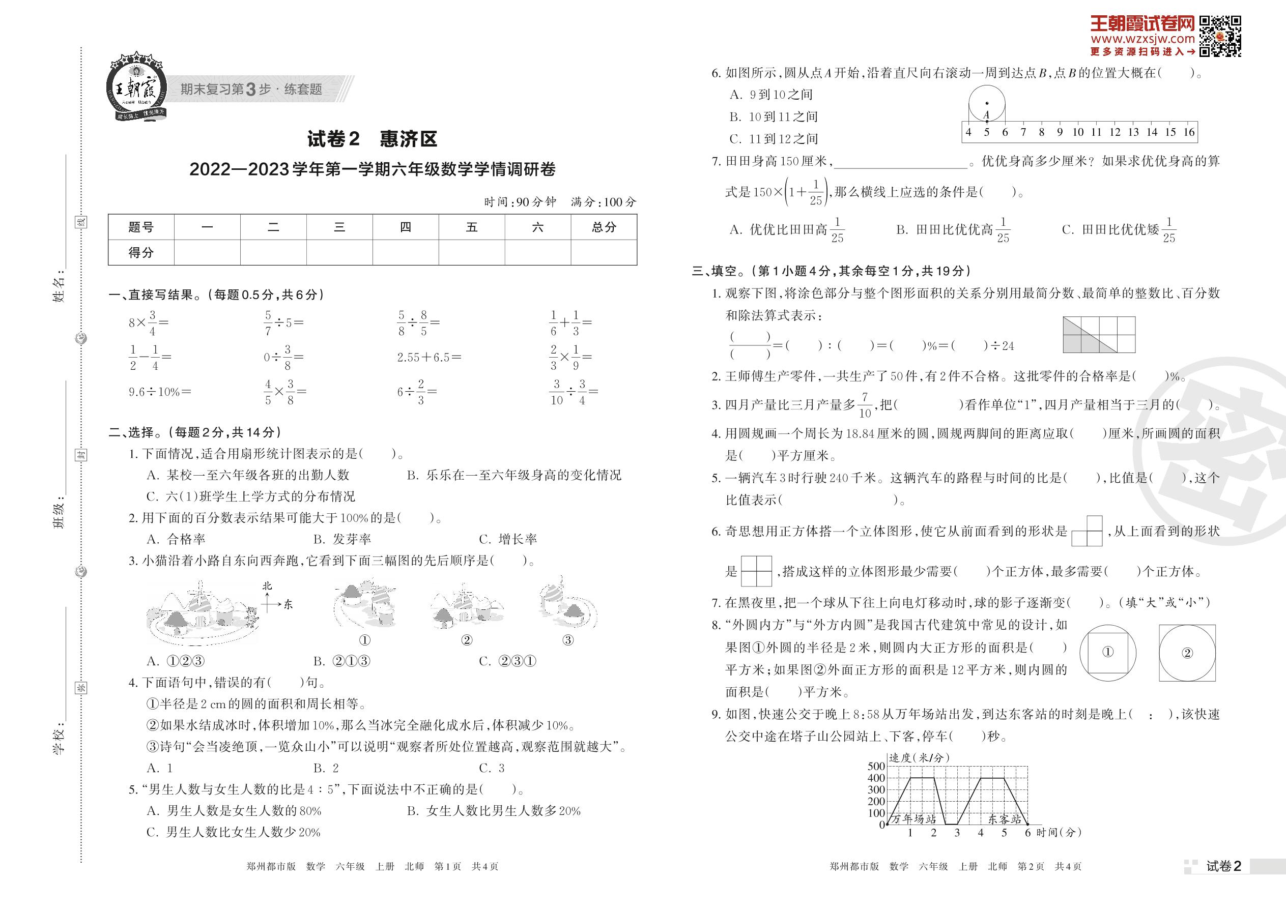 惠济区2022—2023学年第一学期六年级数学学情调研卷(北师版)【2】