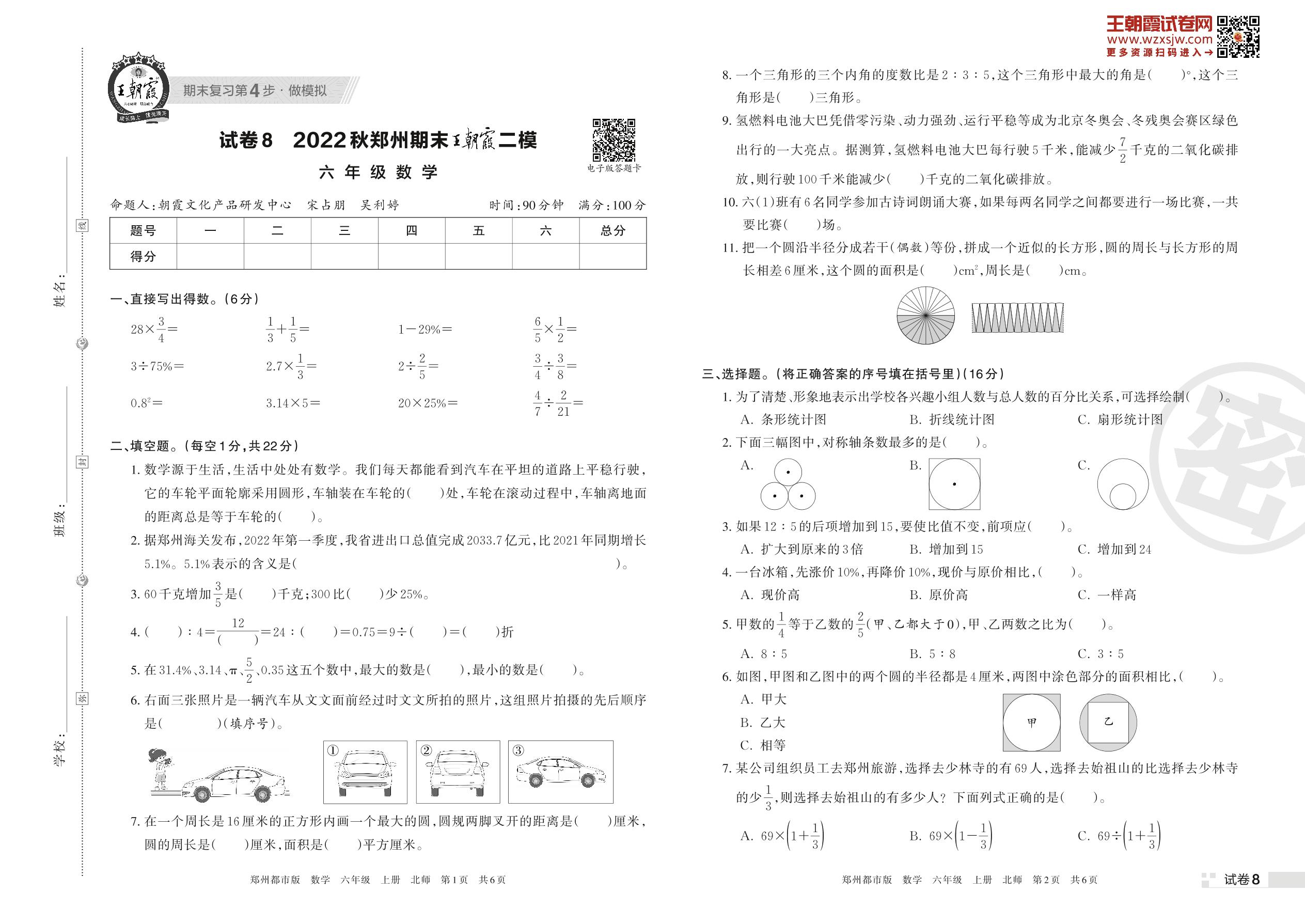 王朝霞期末模拟卷六年级上册数学(北师版)_R221116152553143【8】