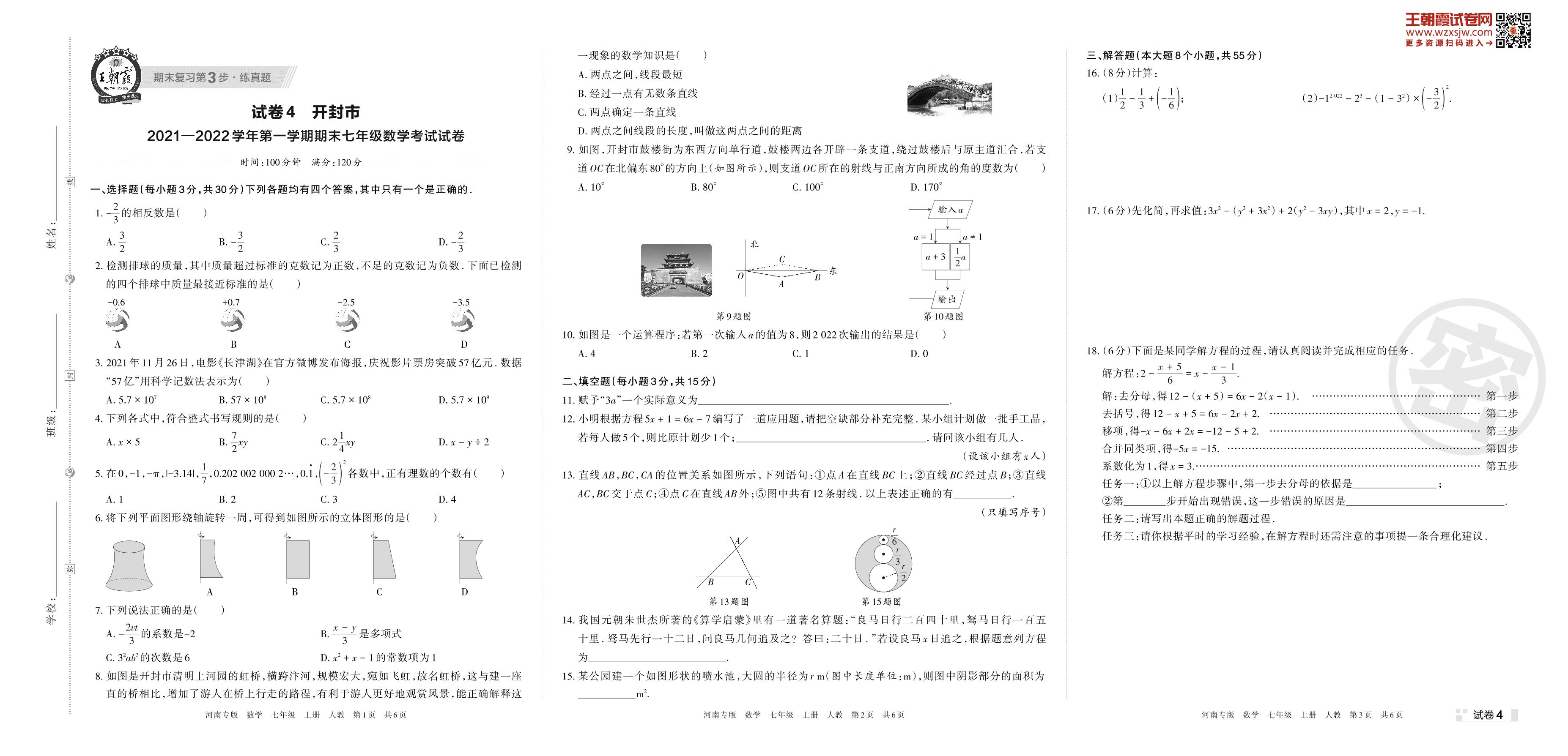 开封市2021—2022学年第一学期期末七年级数学考试试卷(人教版)【4】