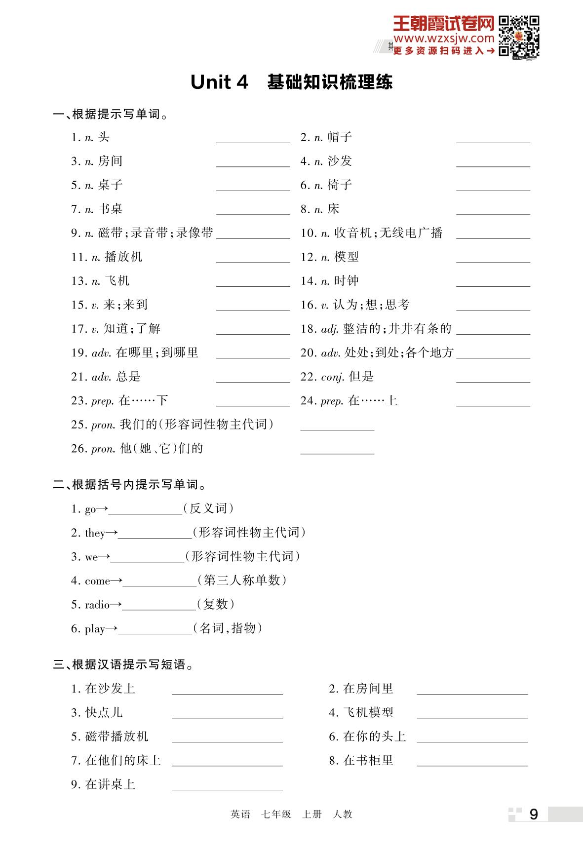 王朝霞期末过课本——Unit 4 基础知识梳理练七年级上册英语(人教版)