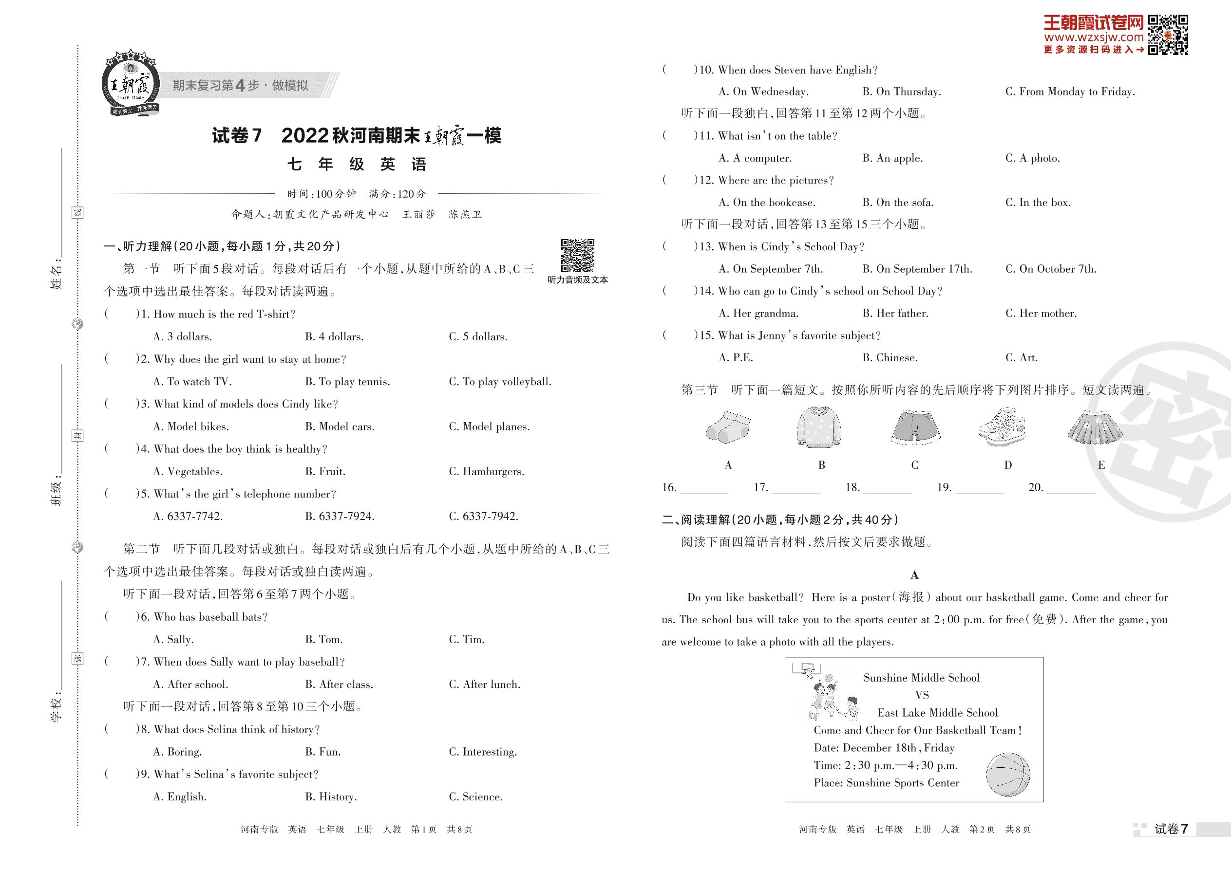 王朝霞期末模拟卷七年级上册英语(人教版)_R221116154919189【7】