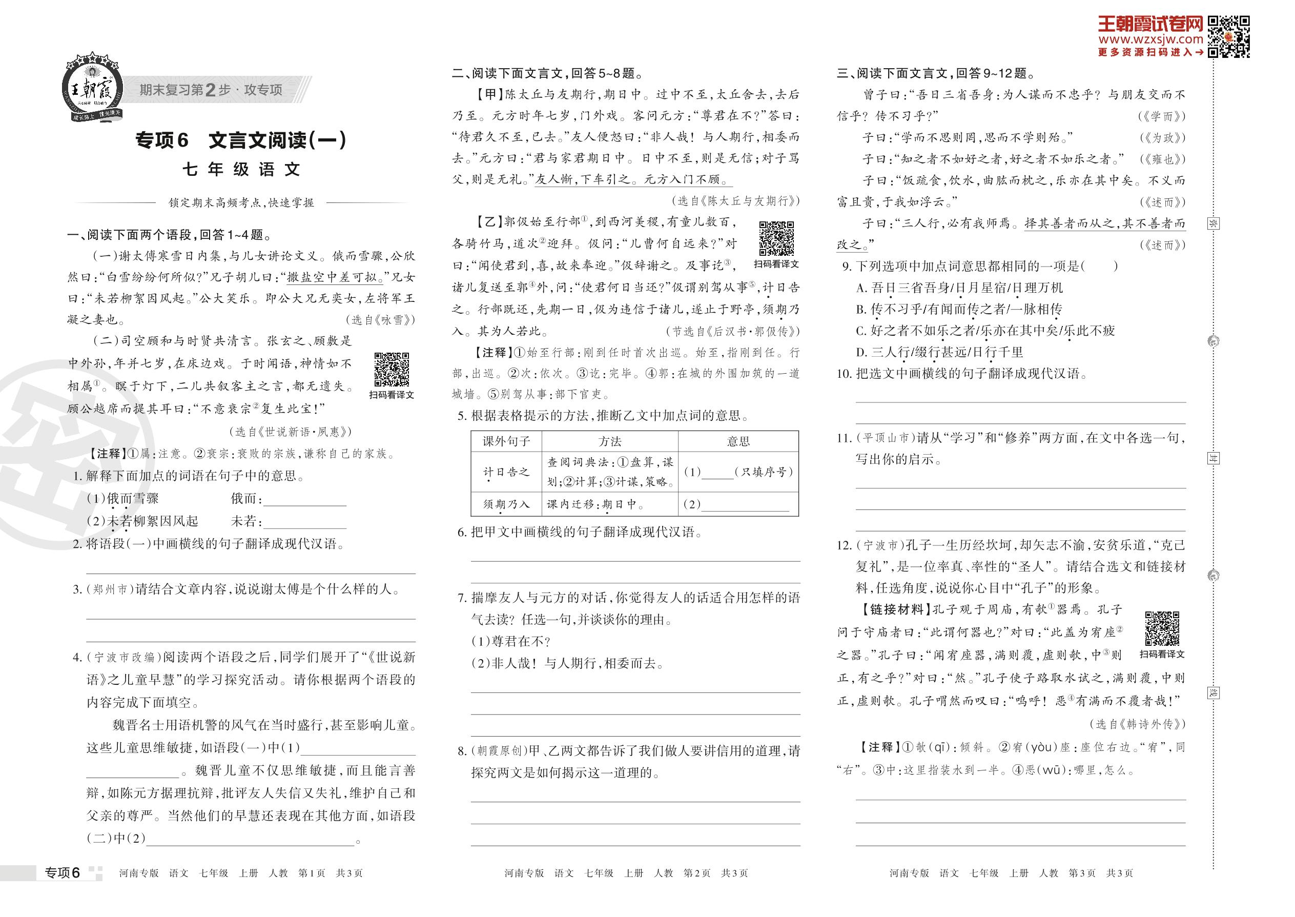 【易考专项】人教版·语文·七年级文言文阅读(一)专项训练