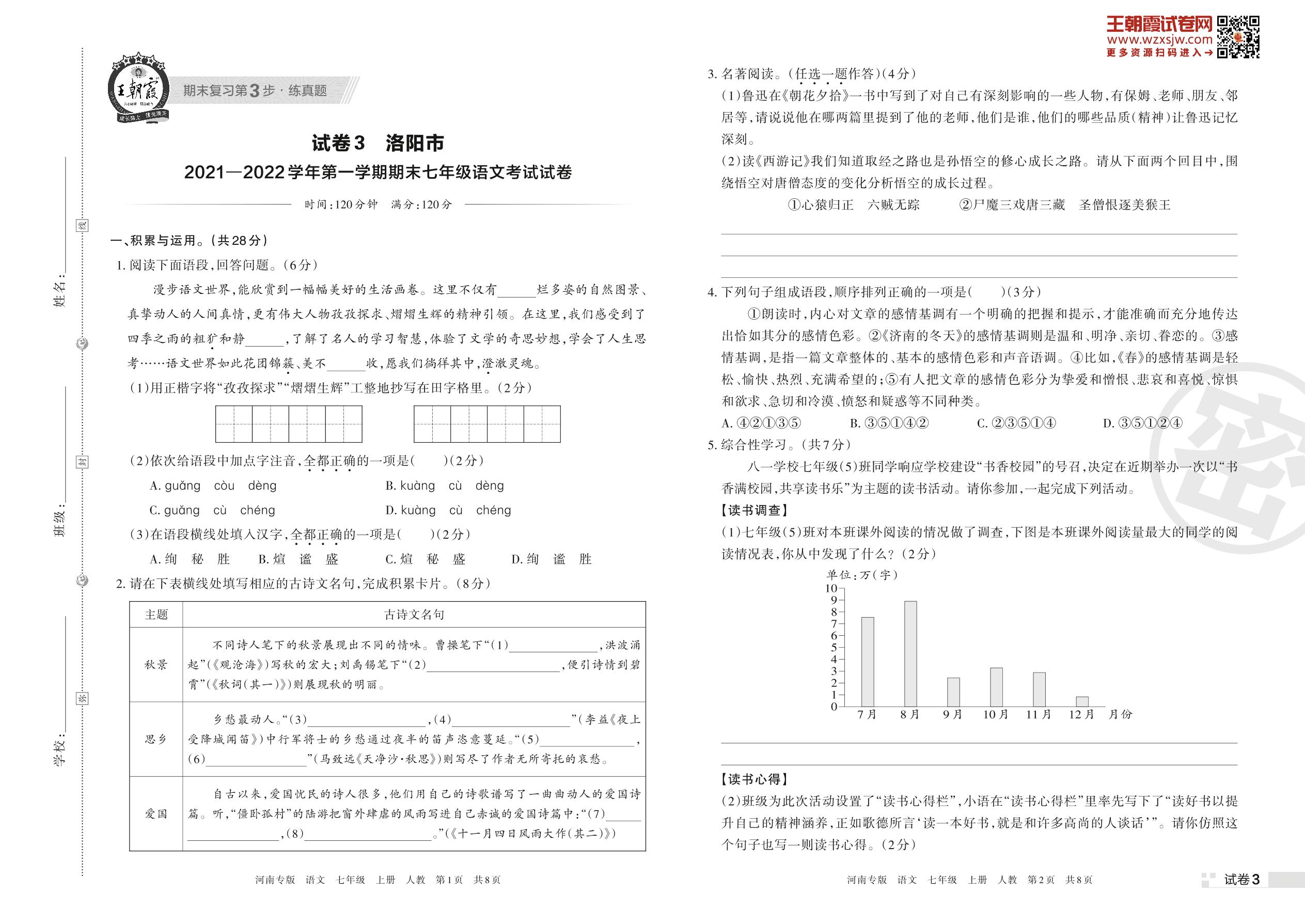 洛阳市2021—2022学年第一学期期末七年级语文考试试卷(人教版)【3】