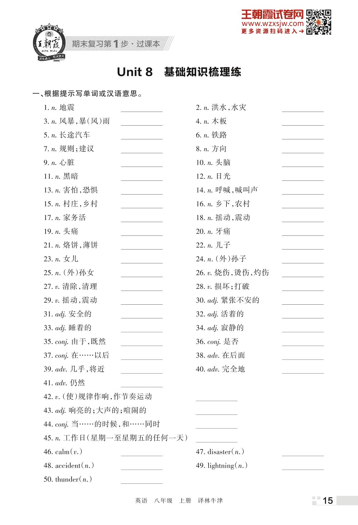 王朝霞期末过课本——Unit 8 基础知识梳理练八年级上册英语(译林牛津版)