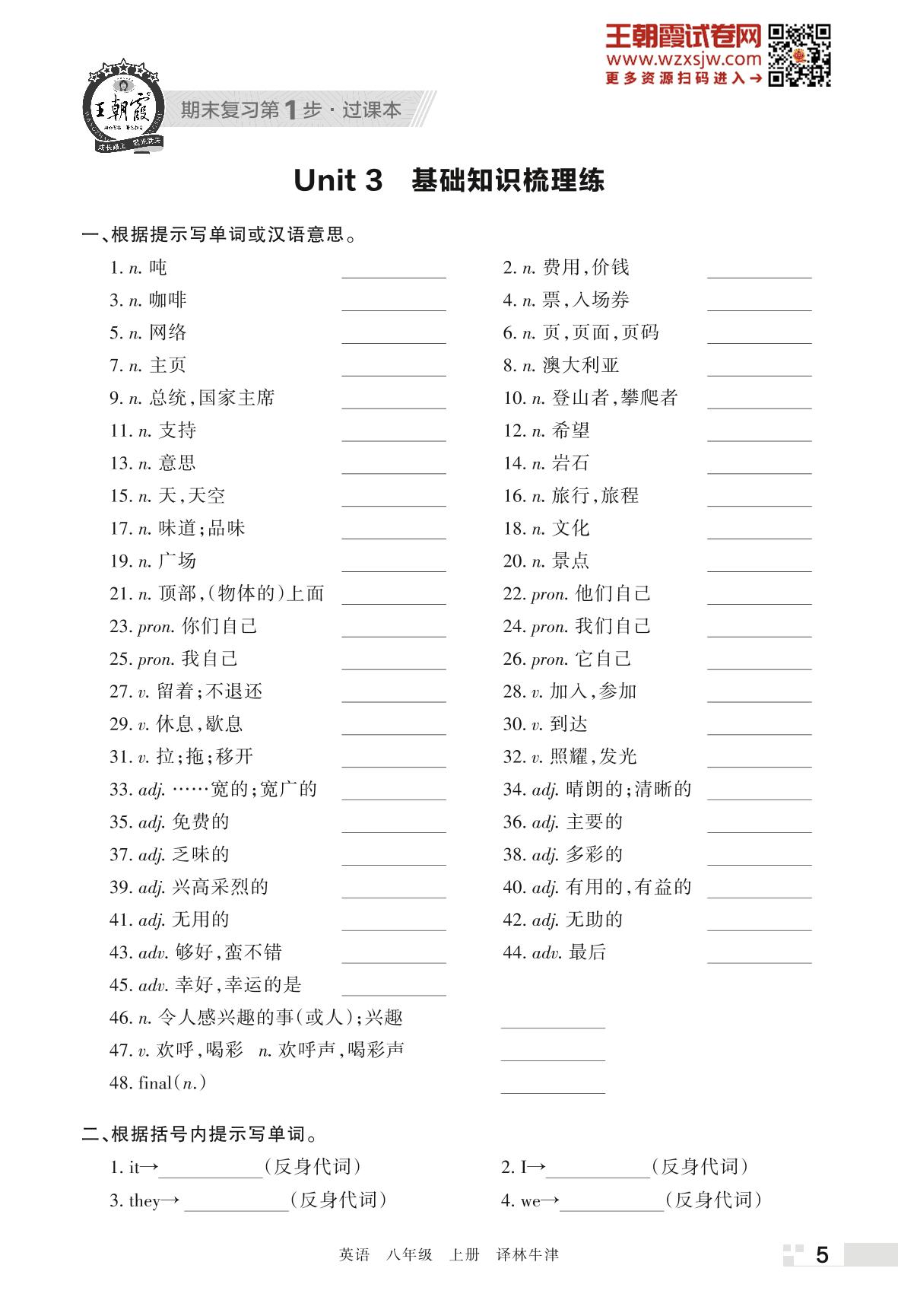 王朝霞期末过课本——Unit 3 基础知识梳理练八年级上册英语(译林牛津版)