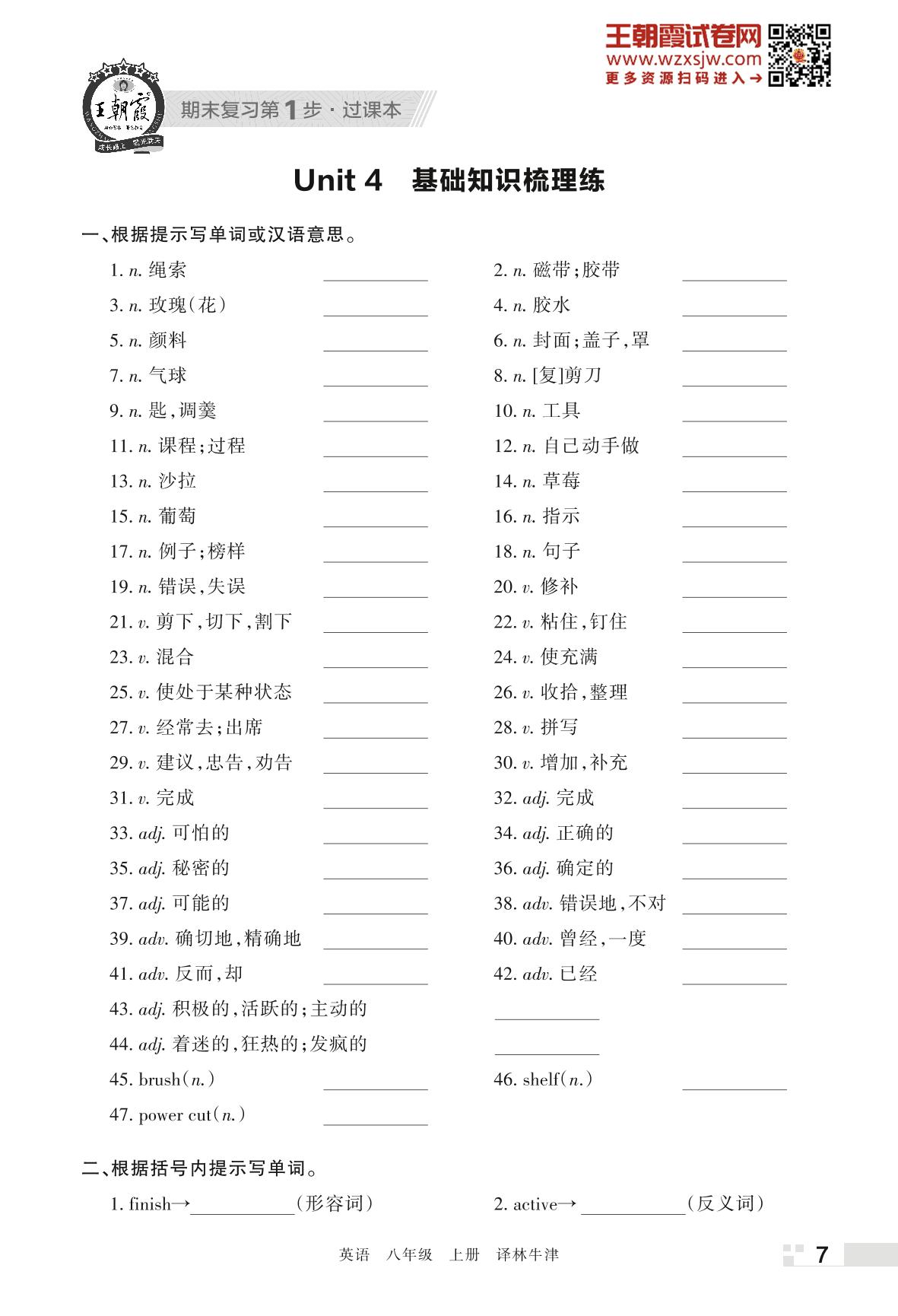 王朝霞期末过课本——Unit 4 基础知识梳理练八年级上册英语(译林牛津版)