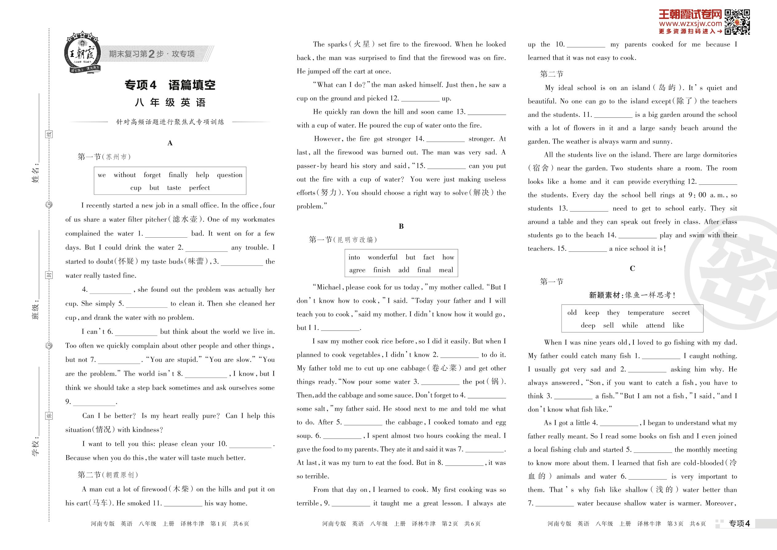 王朝霞期末专项卷——语篇填空八年级上册英语(译林牛津版)【4】