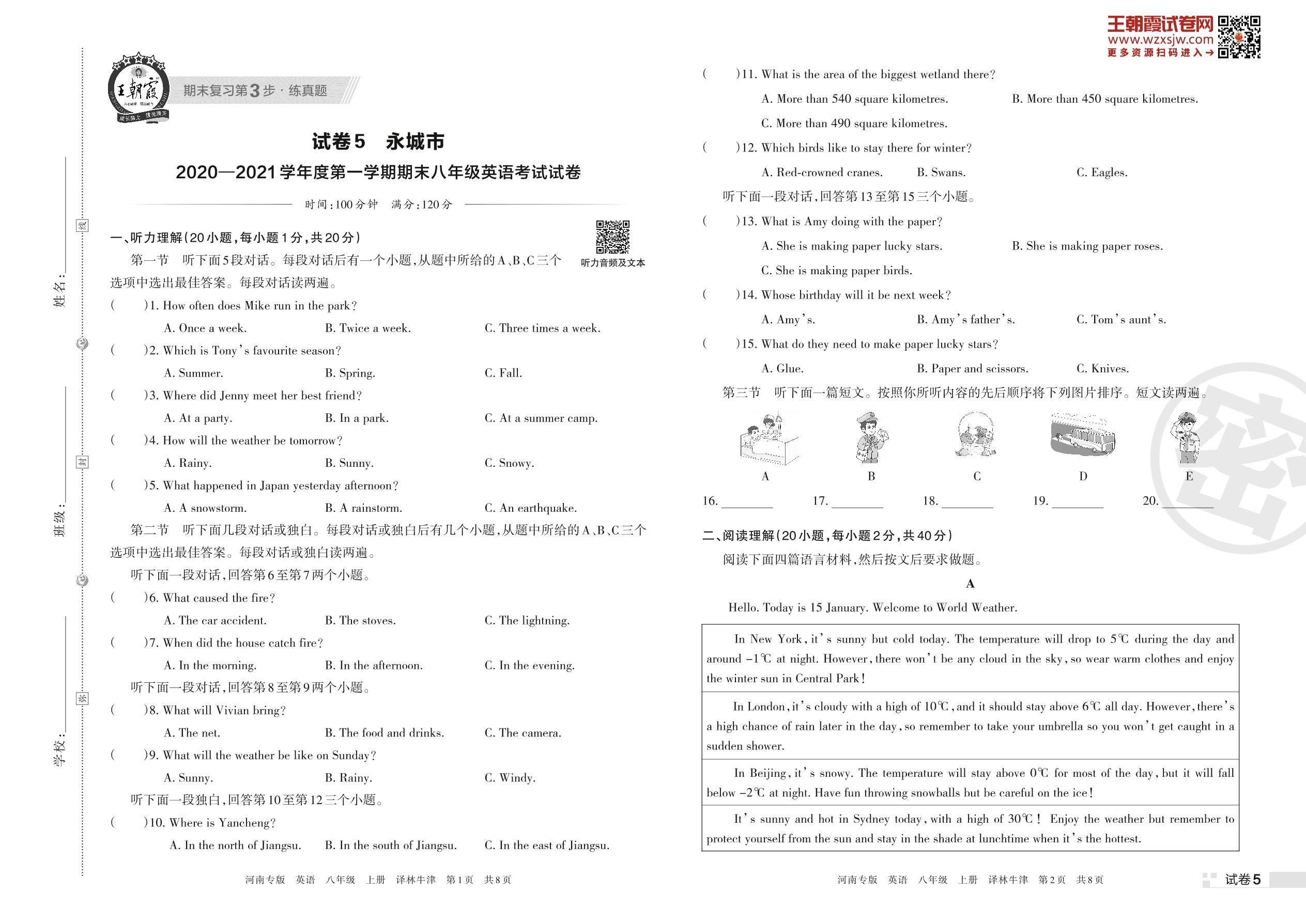 永城市2020—2021学年度第一学期期末八年级英语考试试卷 (译林牛津版)【5】