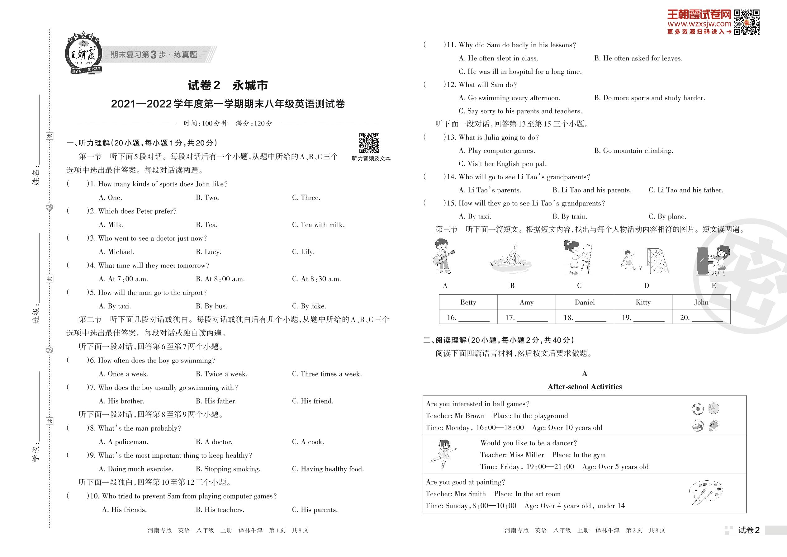 永城市2021—2022学年度第一学期期末八年级英语测试卷(译林牛津版)【2】