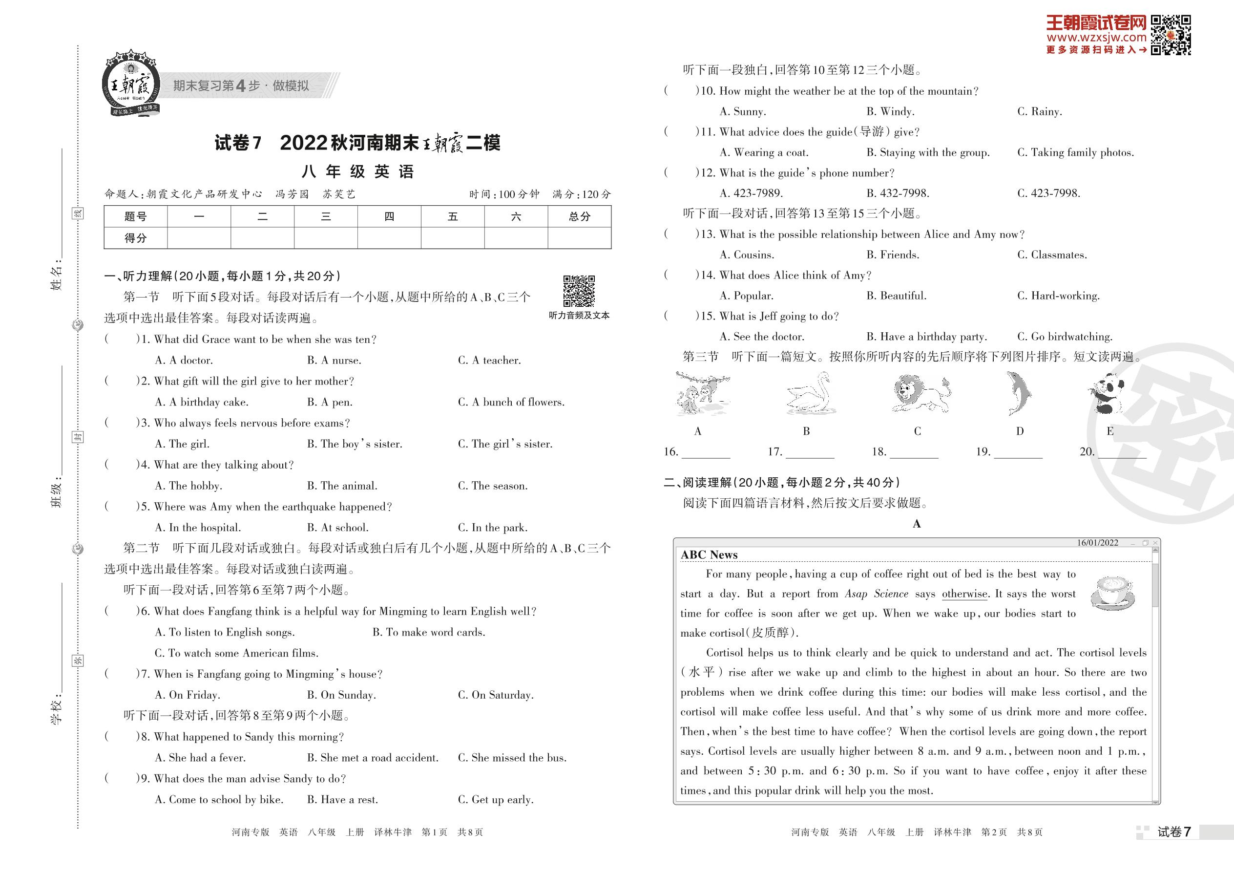王朝霞期末模拟卷八年级上册英语(译林牛津版)_R221116163648862【7】