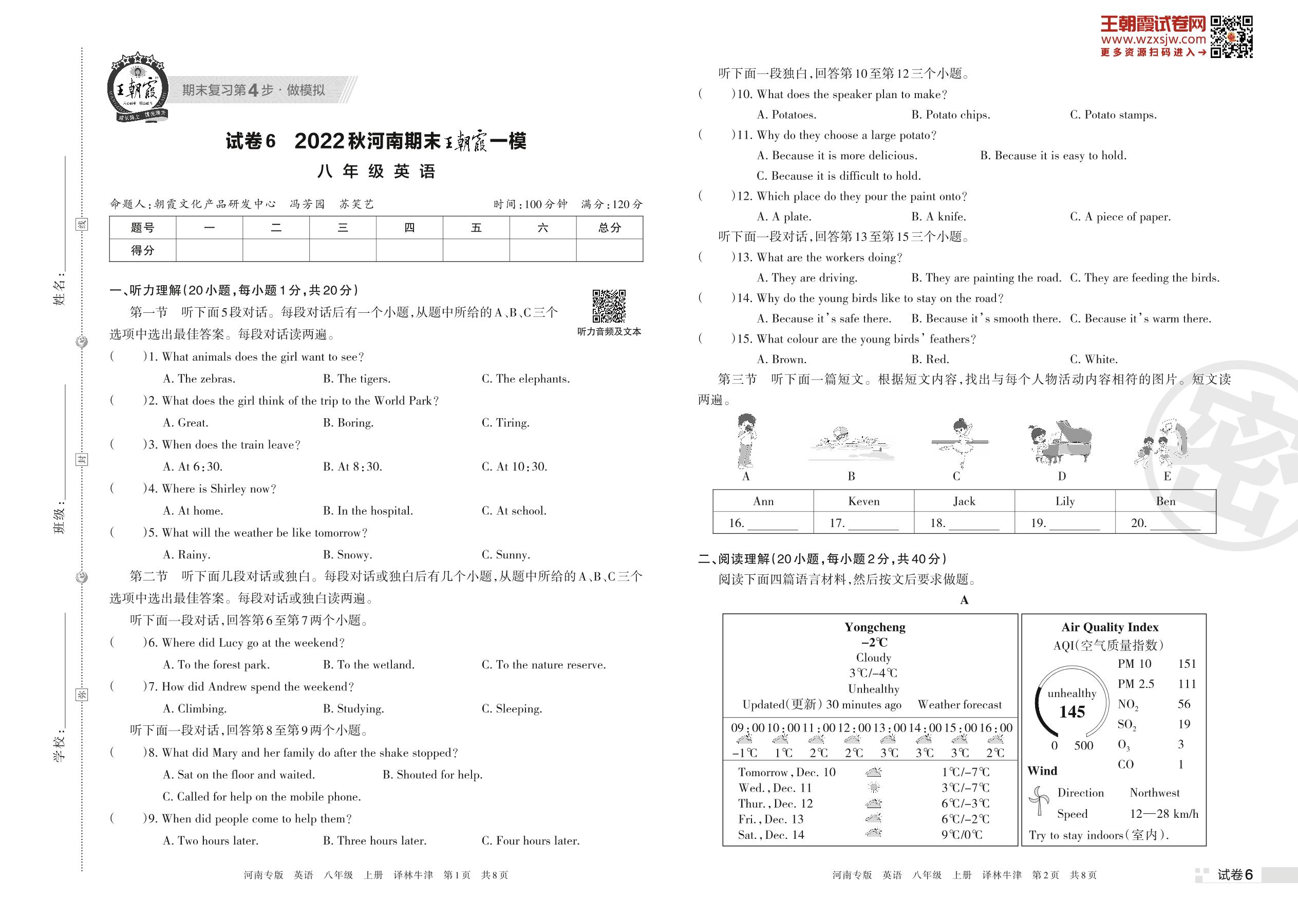 王朝霞期末模拟卷八年级上册英语(译林牛津版)_R221116163648223【6】