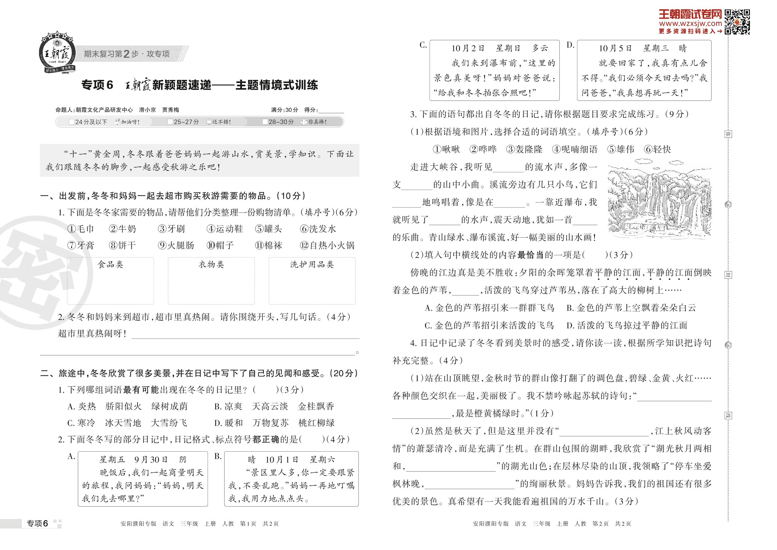王朝霞期末专项卷——王朝霞新颖题速递:主题情境式训练三年级上册语文(人教版)_R221116170452457【6】