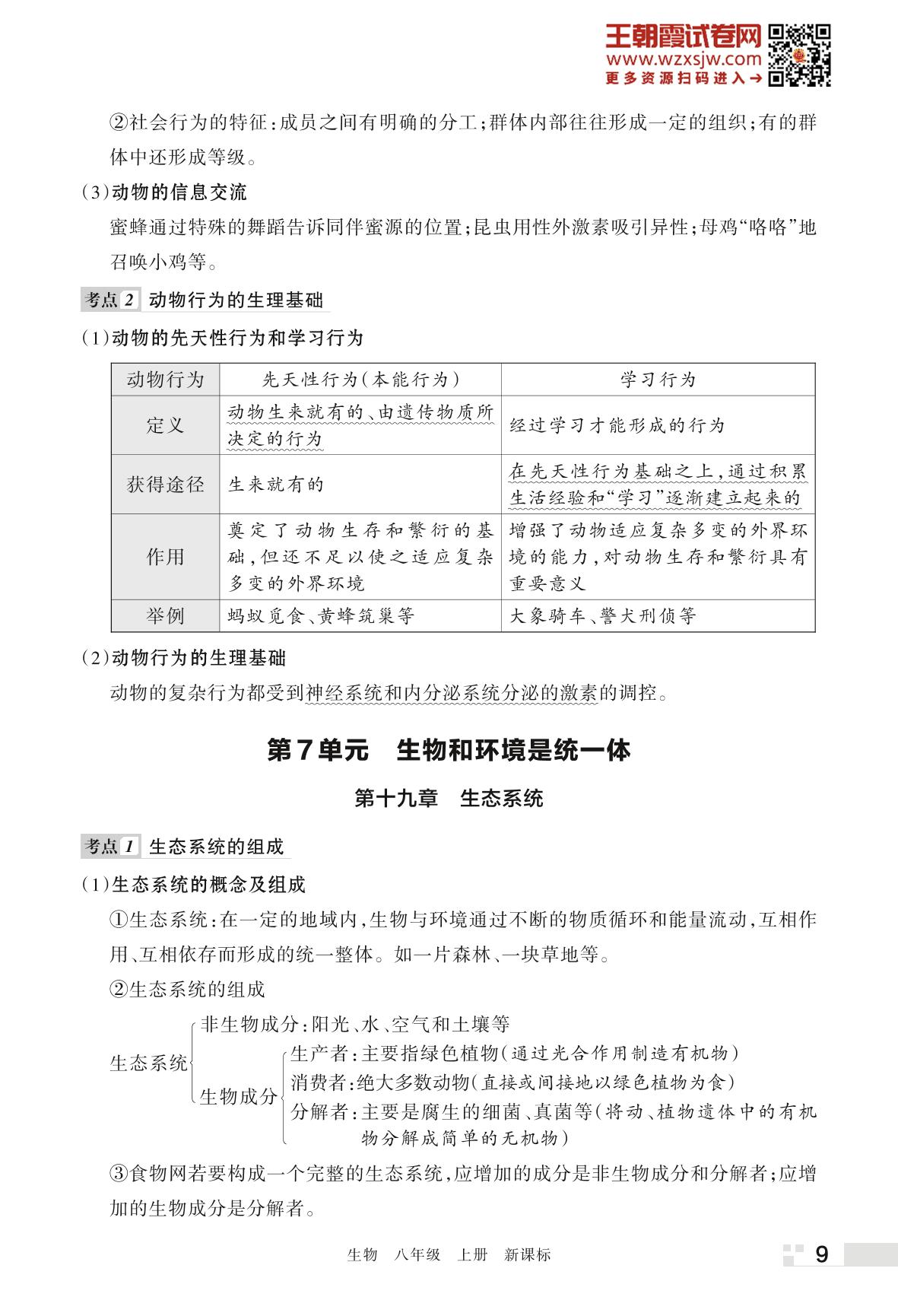 王朝霞期末过课本——第7单元 生物和环境是统一体八年级上册生物(新课标)