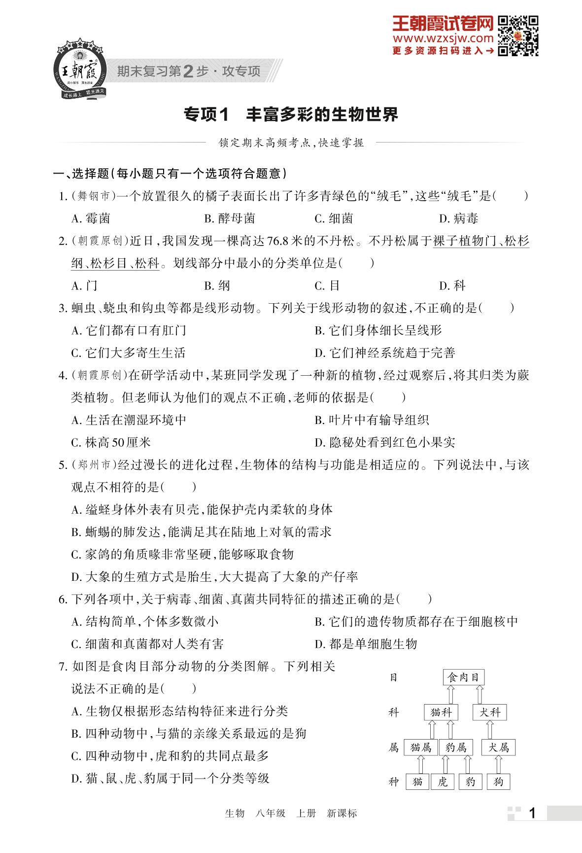 王朝霞期末专项卷——丰富多彩的生物世界八年级上册生物(新课标版)【1】