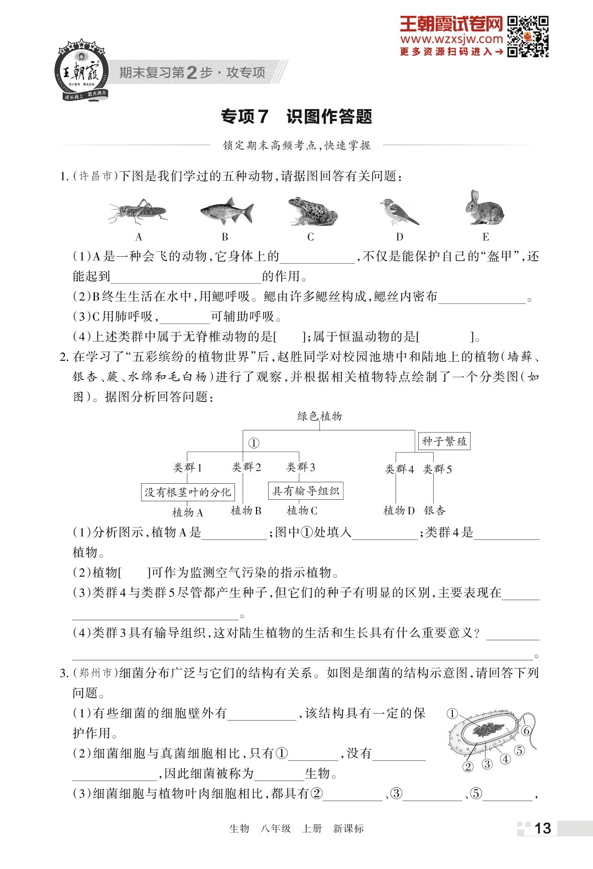 王朝霞期末专项卷——识图作答题八年级上册生物(新课标版)【7】