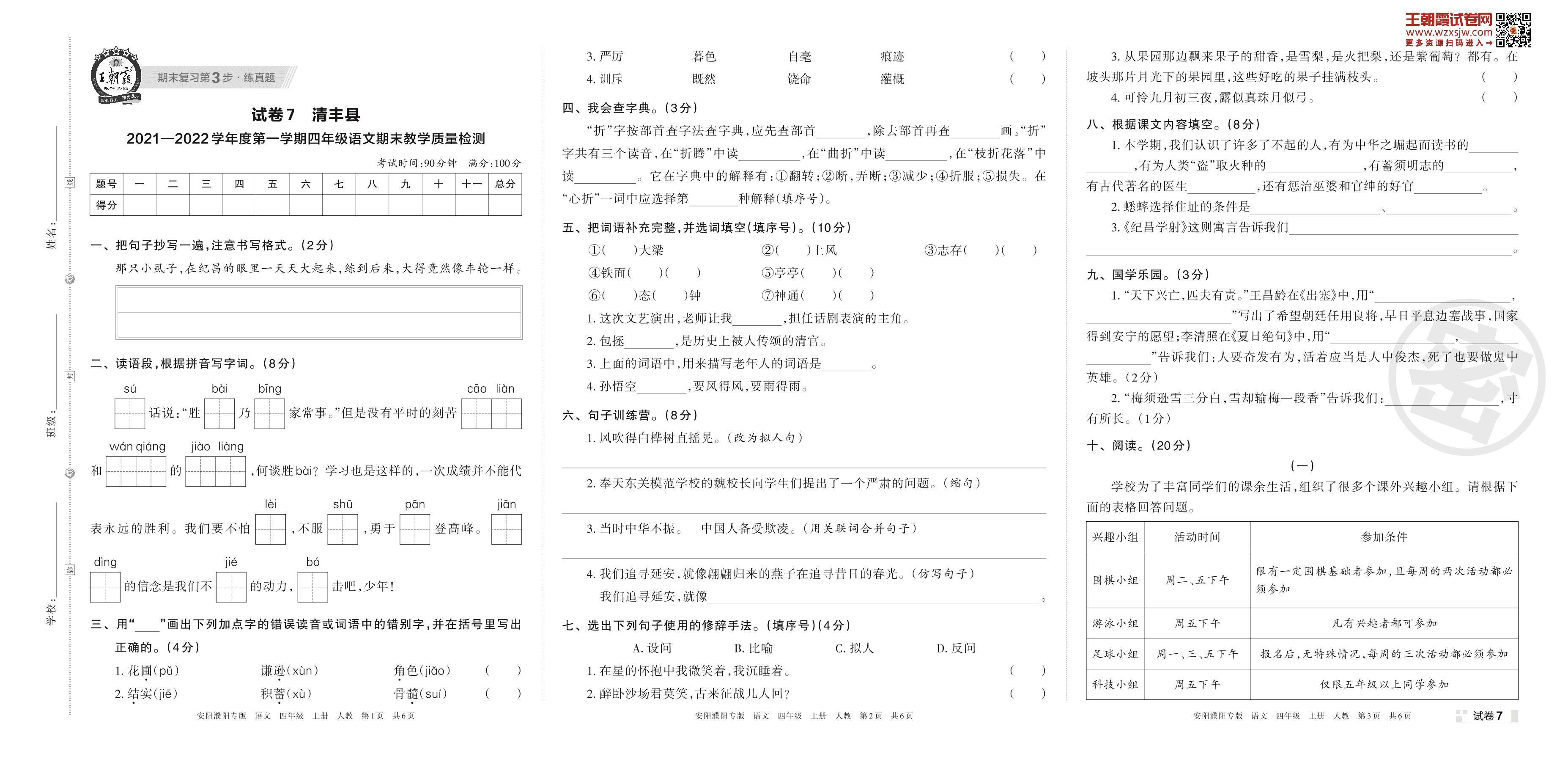 清丰县2021—2022学年度第一学期四年级语文期末教学质量检测(人教版)【7】