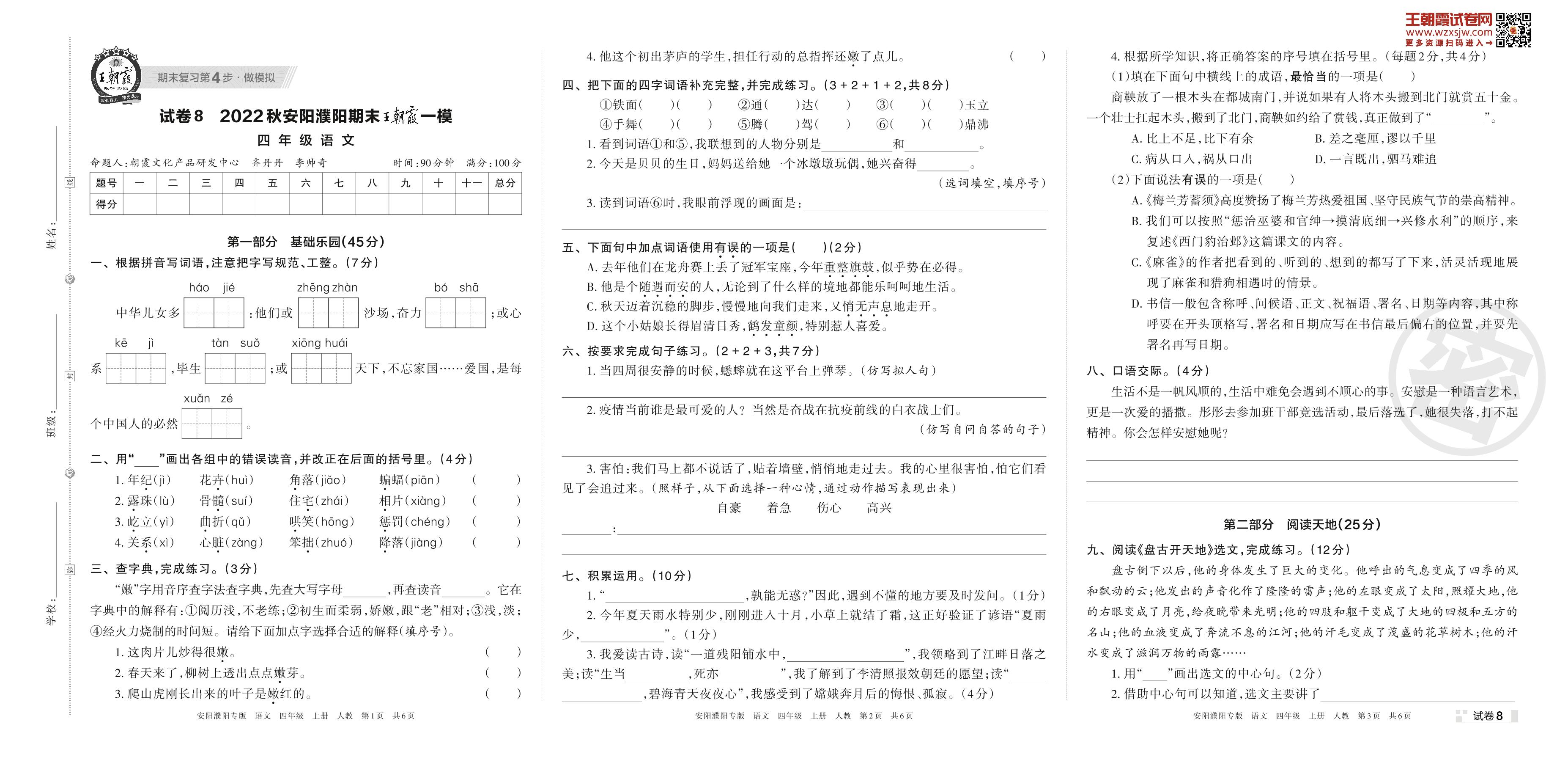 王朝霞期末模拟卷四年级上册语文(人教版)_R221116171100366【8】