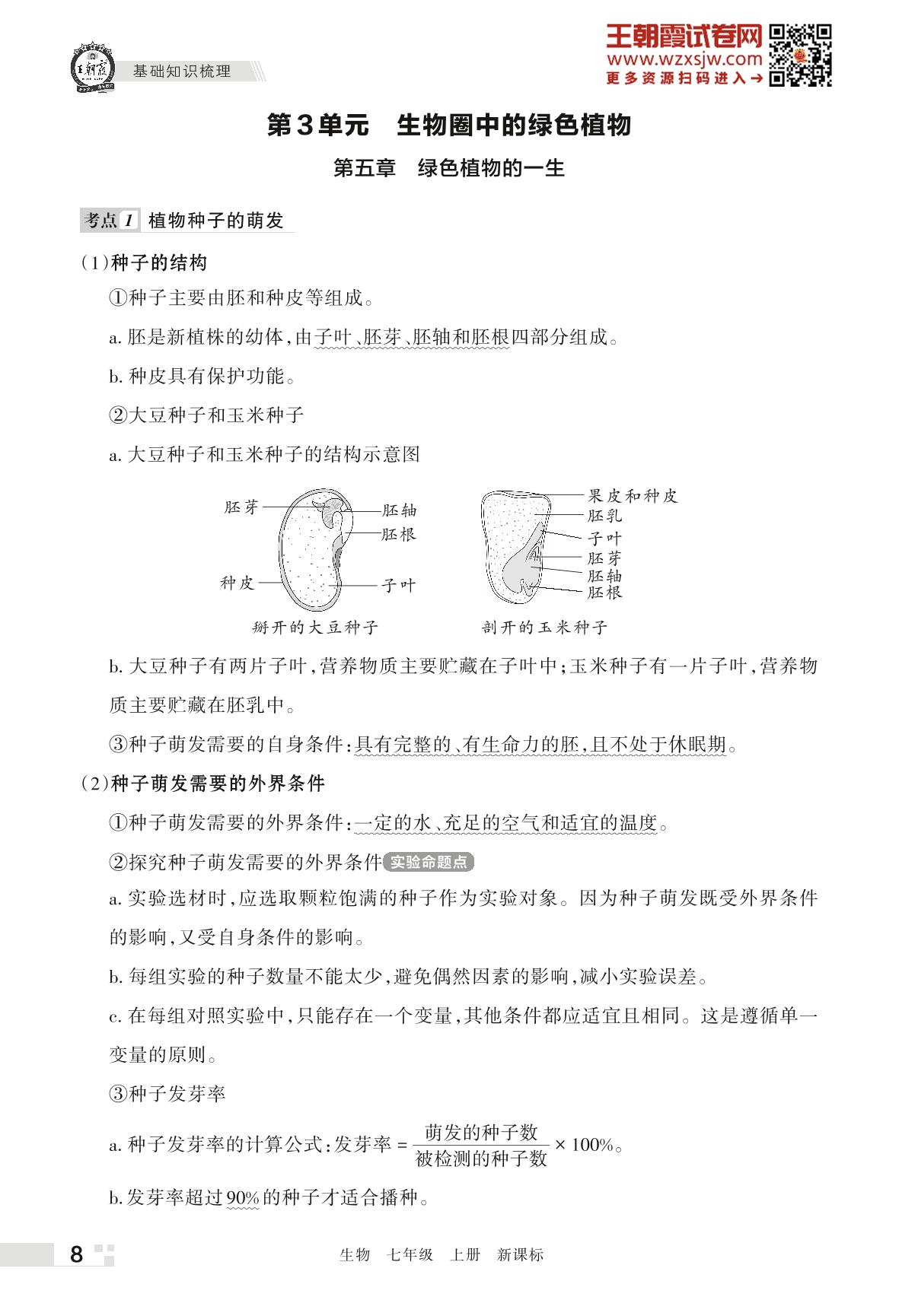 王朝霞期末过课本——第3单元 生物圈中的绿色植物七年级上册生物(新课标版)