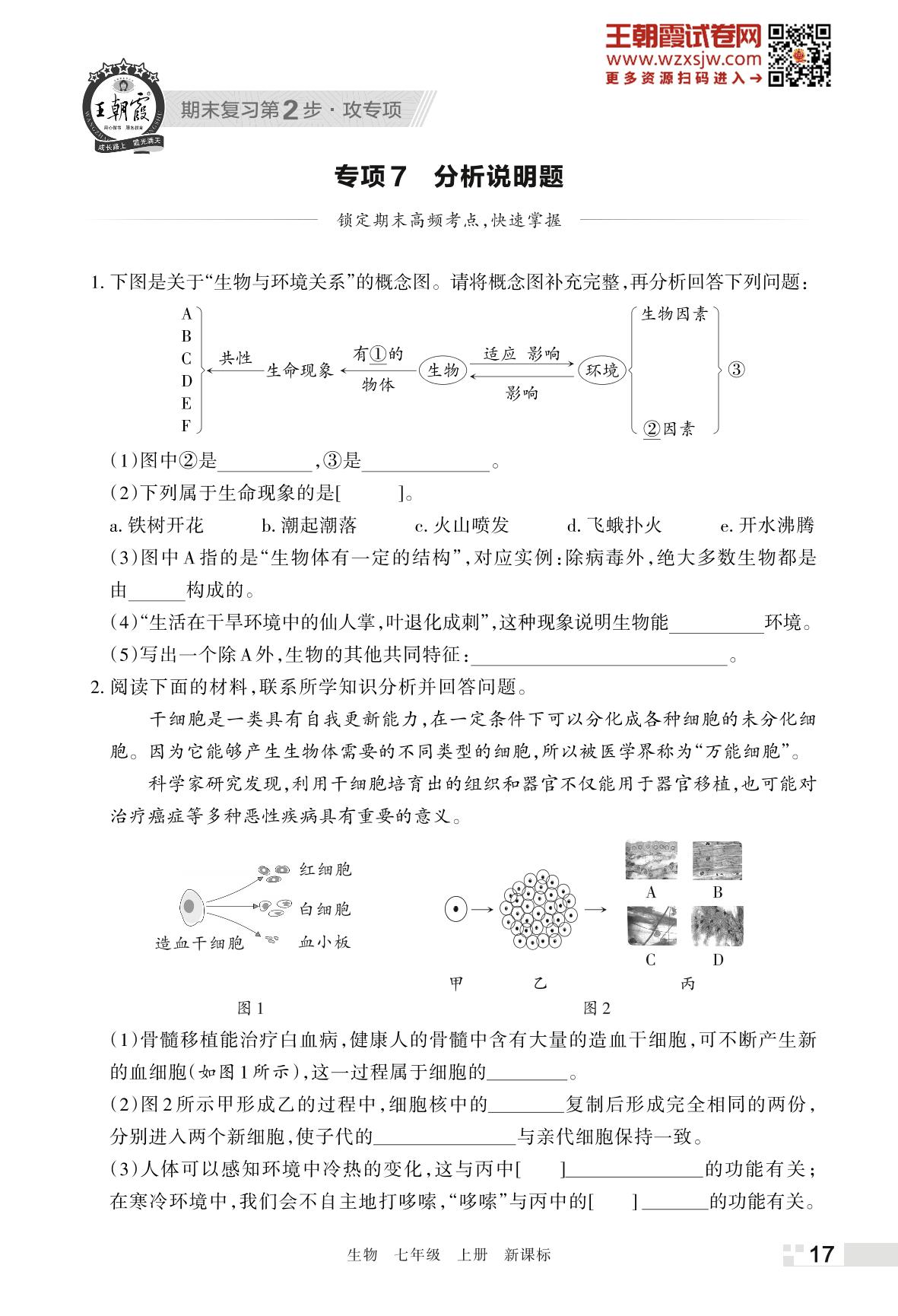 王朝霞期末专项卷——分析说明题七年级上册生物(新课标版)【7】